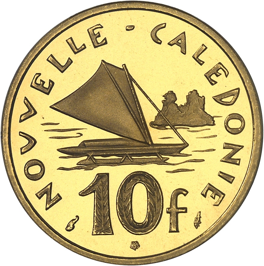 - NEW CALEDONIA Ve République (1958 à nos jours). Piéfort de 10 francs I.E.O.M. en Or, Frappe spéciale (SP) 1979, Pessac.