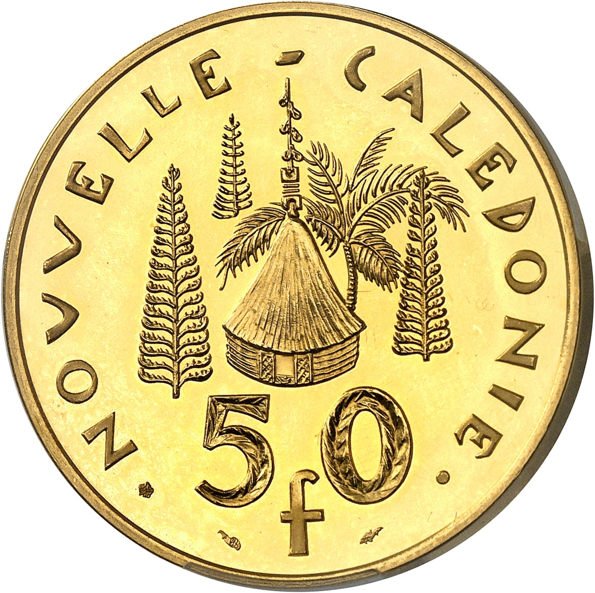 - NEW CALEDONIA Ve République (1958 à nos jours). Piéfort de 50 francs I.E.O.M. en Or, Frappe spéciale (SP) 1979, Pessac.