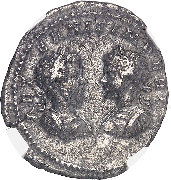 Rv. AET - ERNIT IMPERI. Bustes affrontés de Septime Sévère, lauré et cuirassé et de Caracalla, lauré et cuirassé.