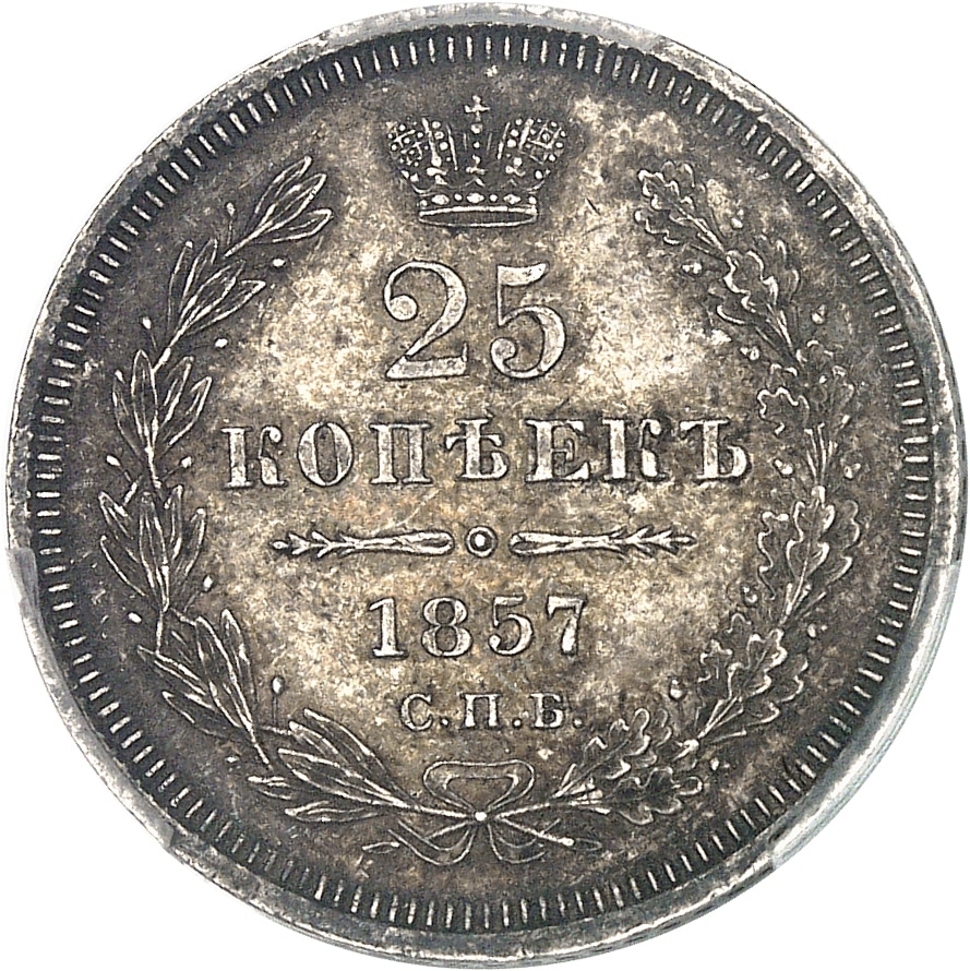 - RUSSIA Alexandre II (1855-1881). 25 kopeck 1857 ФБ, СПБ, Saint-Pétersbourg.