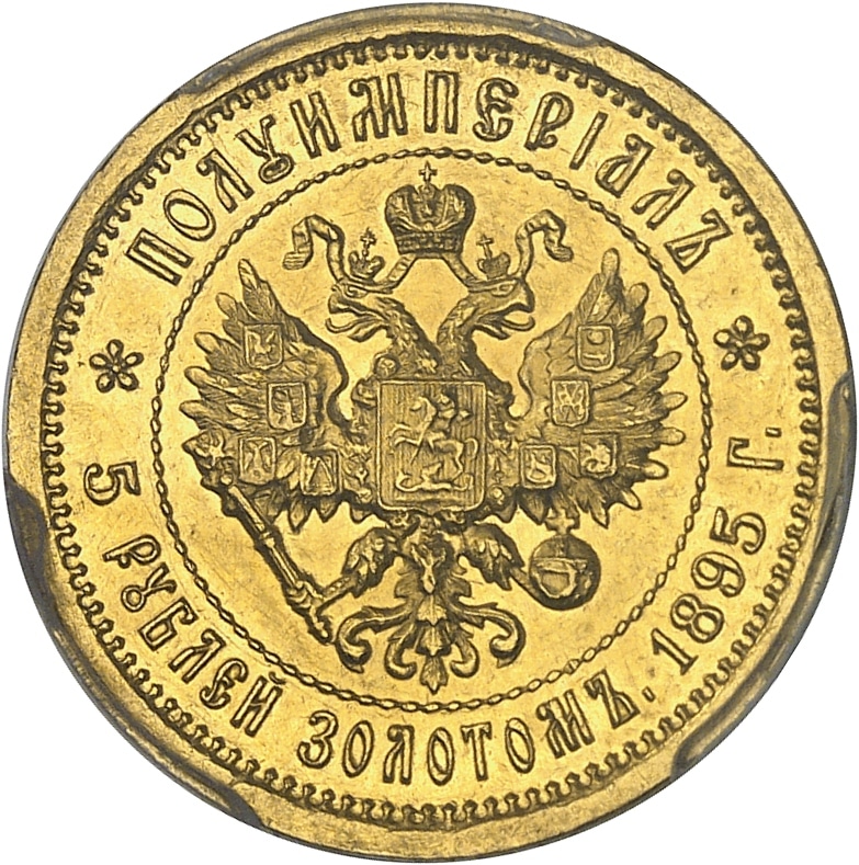 Cette pièce de 5 roubles ou de 1/2 impérial n'est émise qu'à 36 exemplaires. Elle incarne la volonté d'un rapprochement économique entre la Russie et les nations européennes puisque ce module correspond à la pièce de 20 Francs de l'Union monétaire latine conclue le 23 décembre 1865 entre la France, la Belgique, la Suisse, la Grèce et l'Italie dans le but de faciliter les échanges économiques et financiers : les pièces d'or et d'argent font le même poids, le même titre et le même diamètre dans tous ces pays. Cette série comprend les valeurs de 5 roubles ou 1/2 impérial correspondant à 20 francs Or, 10 roubles ou 1 impérial pour 40 francs Or et 25 roubles ou 2 1/2 impériales pour 100 francs Or, et est frappée entre 1895 et 1897 Découvrir cette pièce en vidéo * Following Council Directive (EU) 2022/542 of April 5, 2022, implemented in national law from 01/01/2025, buyers from within the EU have to pay 5.5% VAT on the hammer price of this lot. * Suite à la Directive (UE) 2022/542 du Conseil du 5 avril 2022, mise en application dans le droit national à compter du 01/01/2025, l’adjudicataire européen devra également payer une TVA de 5,5% sur ce lot