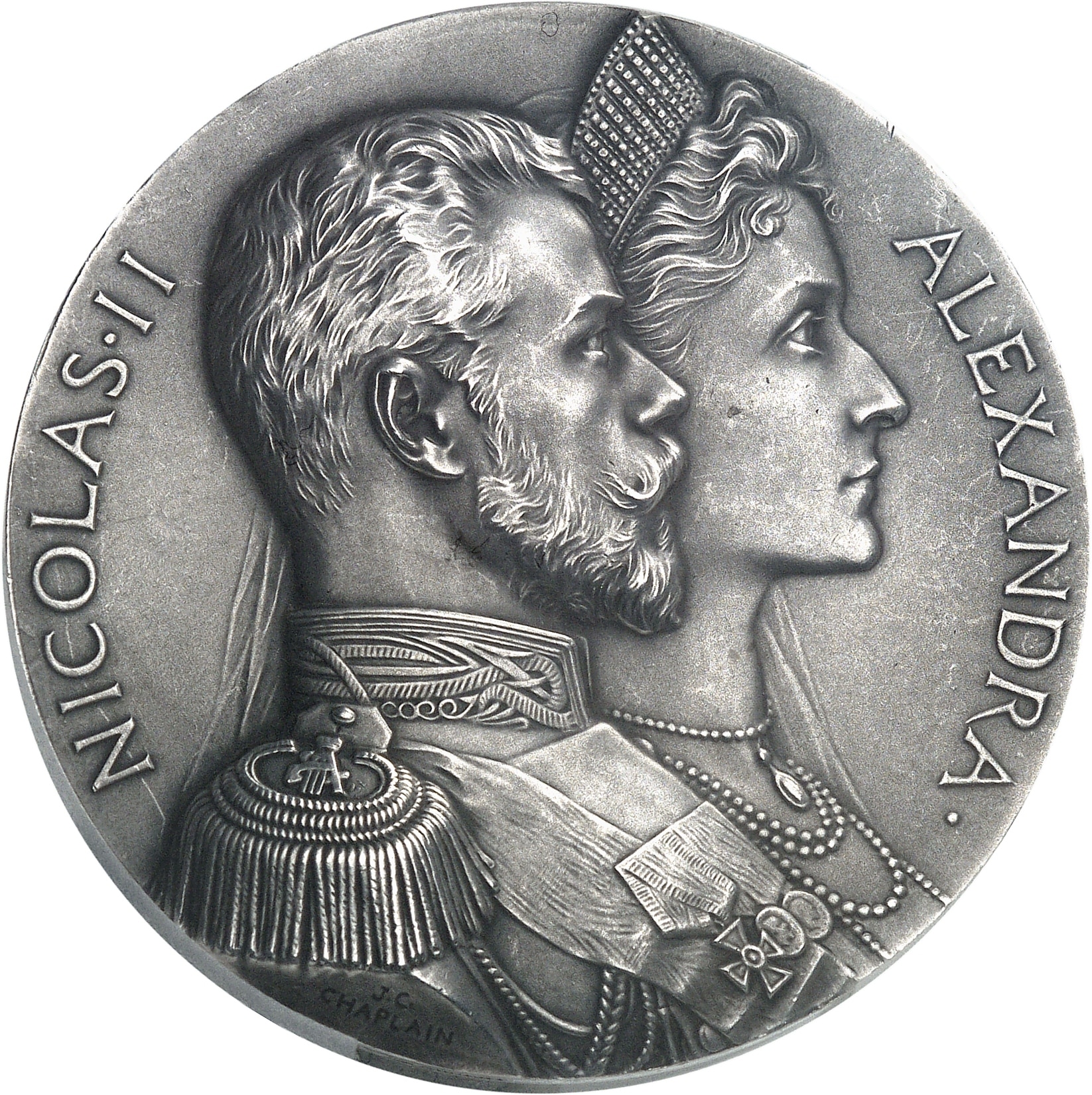 Av. NICOLAS. II - ALEXANDRA. Leurs bustes accolés à droite, signature J.-C. CHAPLAIN.