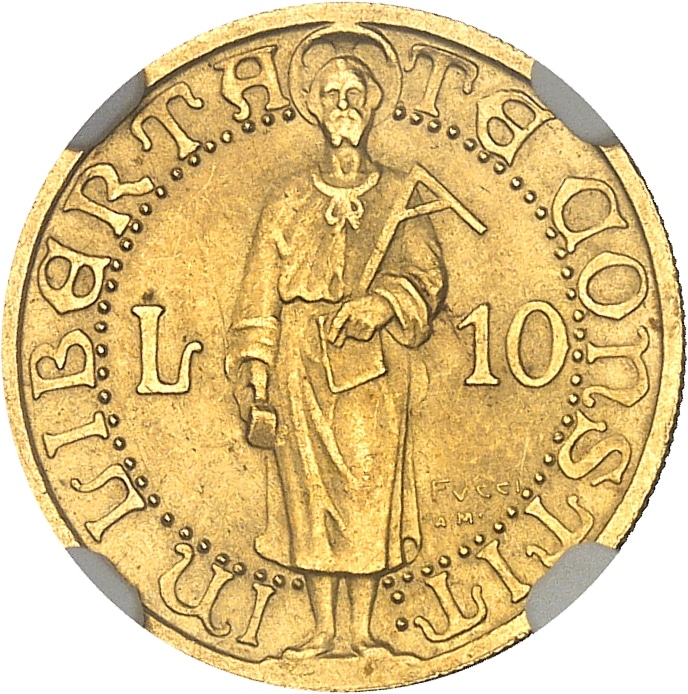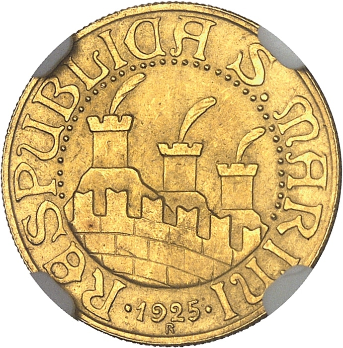 - SAN MARINO République. 10 lire 1925, R, Rome.