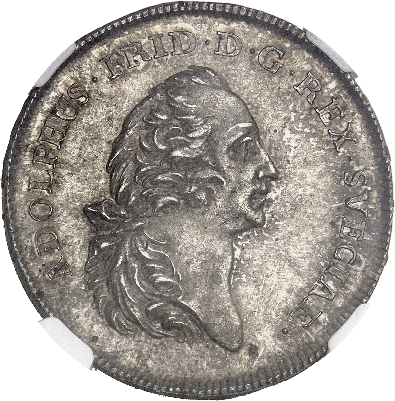 Av. ADOLPHUS. FRID. D. G. REX. SVECIAE. Tête à droite.