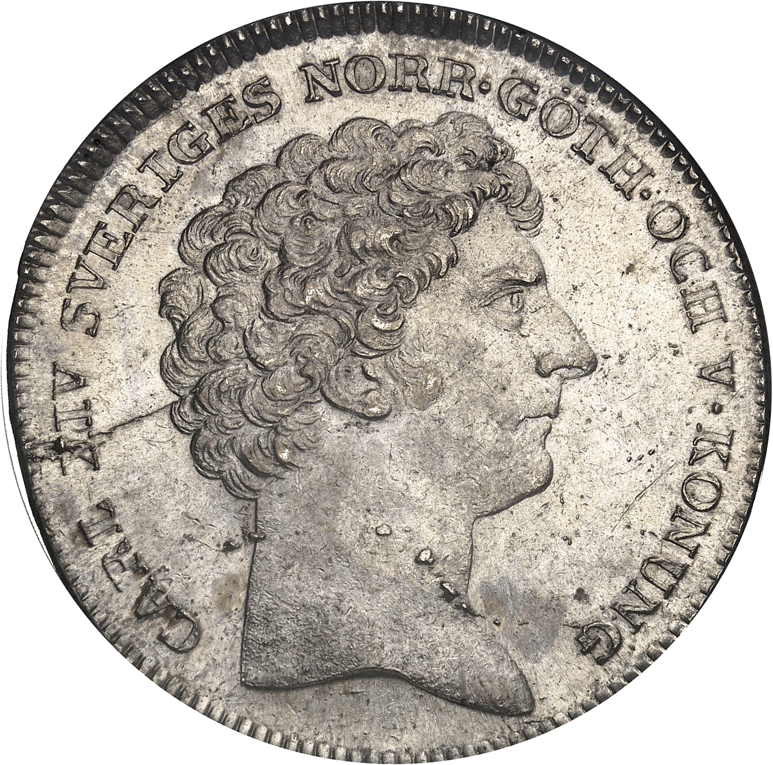 - SWEDEN Charles XIV Jean (1818-1844). 1 riksdaler (buste large) 1824 CB, Stockholm.