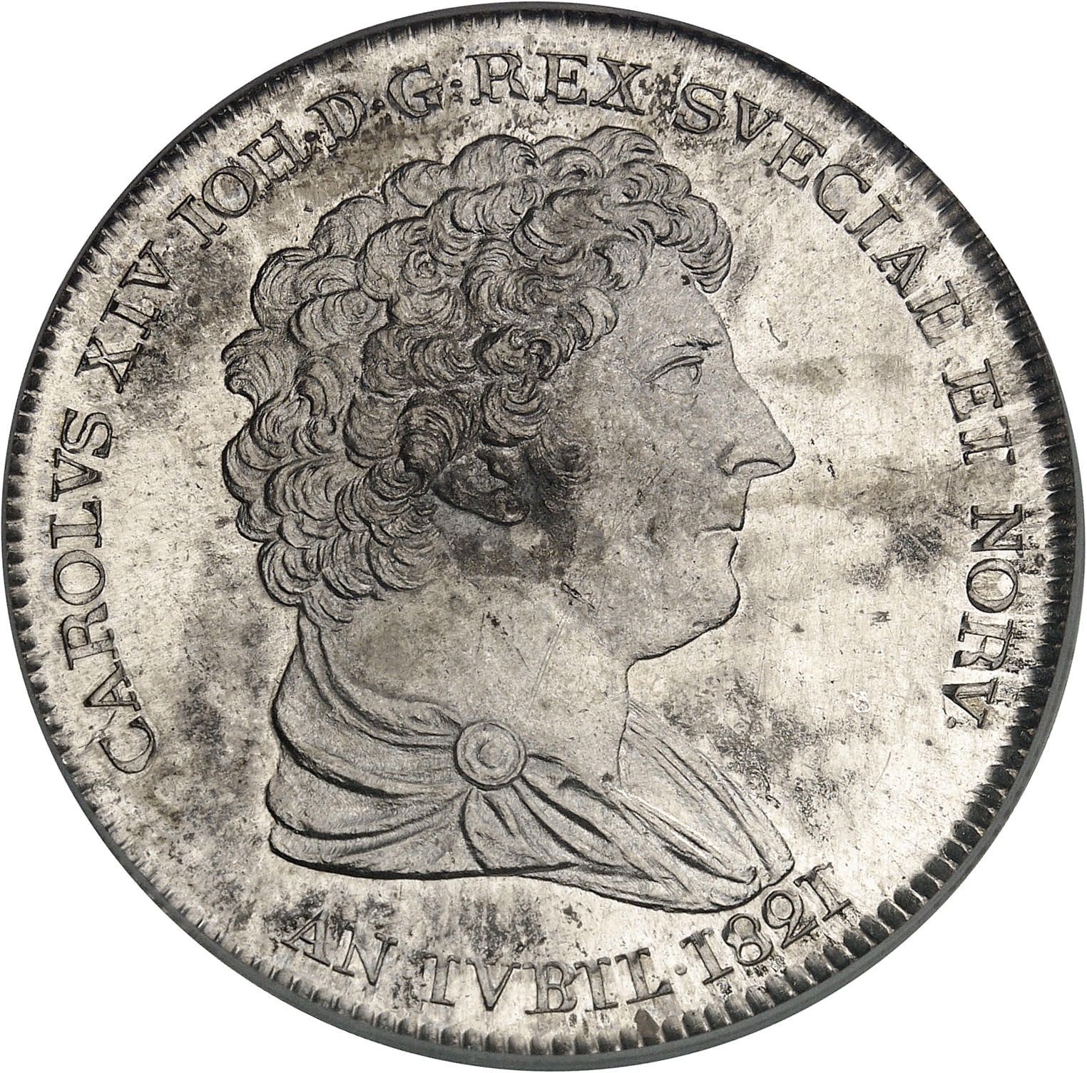 Av. CAROLVS XIV IOH. D. G. REX SVECIAE ET NORV. Buste drapé à droite, au-dessous : AN. IVBIL. (date).