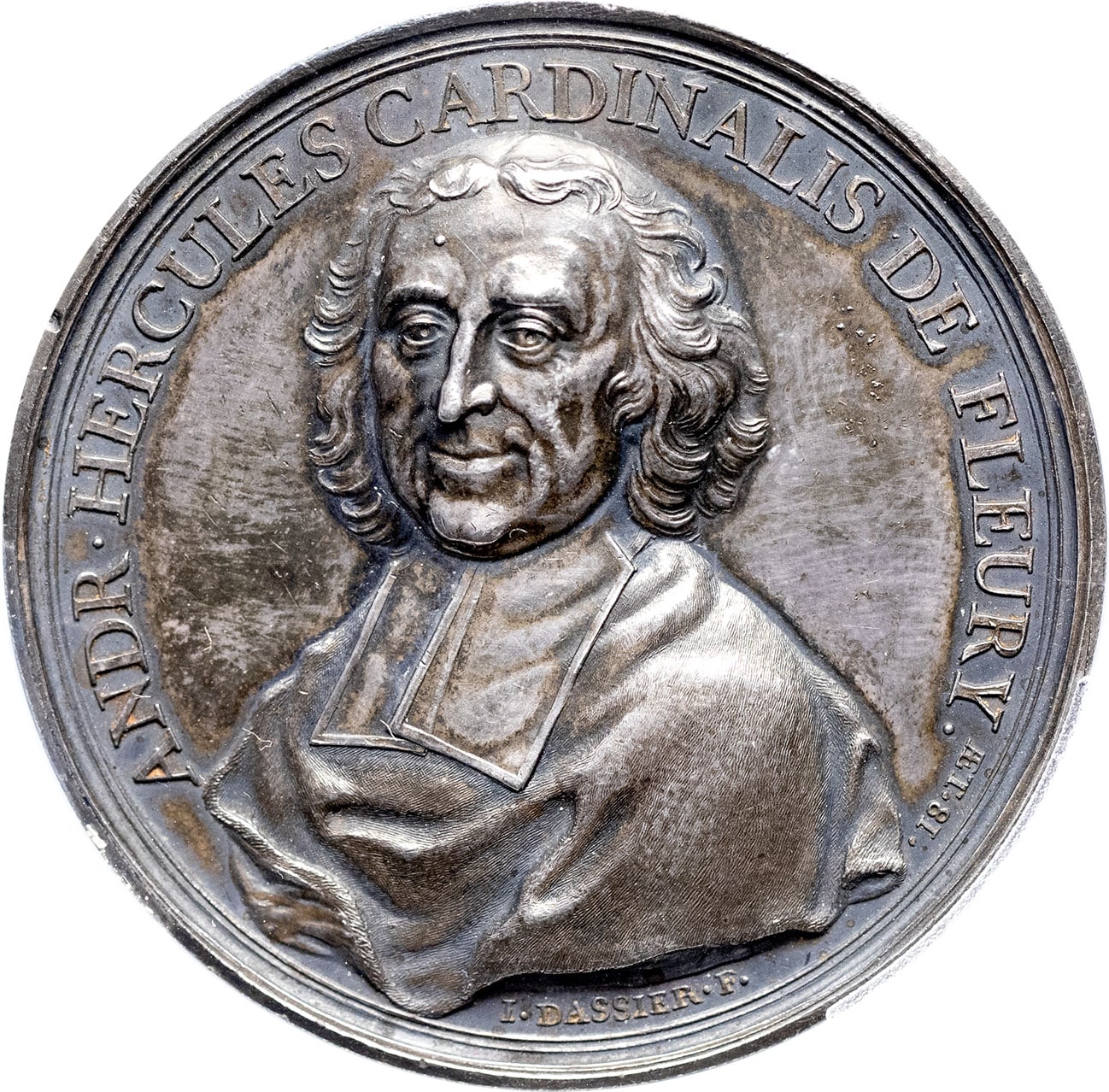Av. ANDR. HERCULES CARDINALIS DE FLEURY. Buste de trois-quarts à gauche, en habit de prélat, la tête nue ; au-dessous signature I. DASSIER. F.