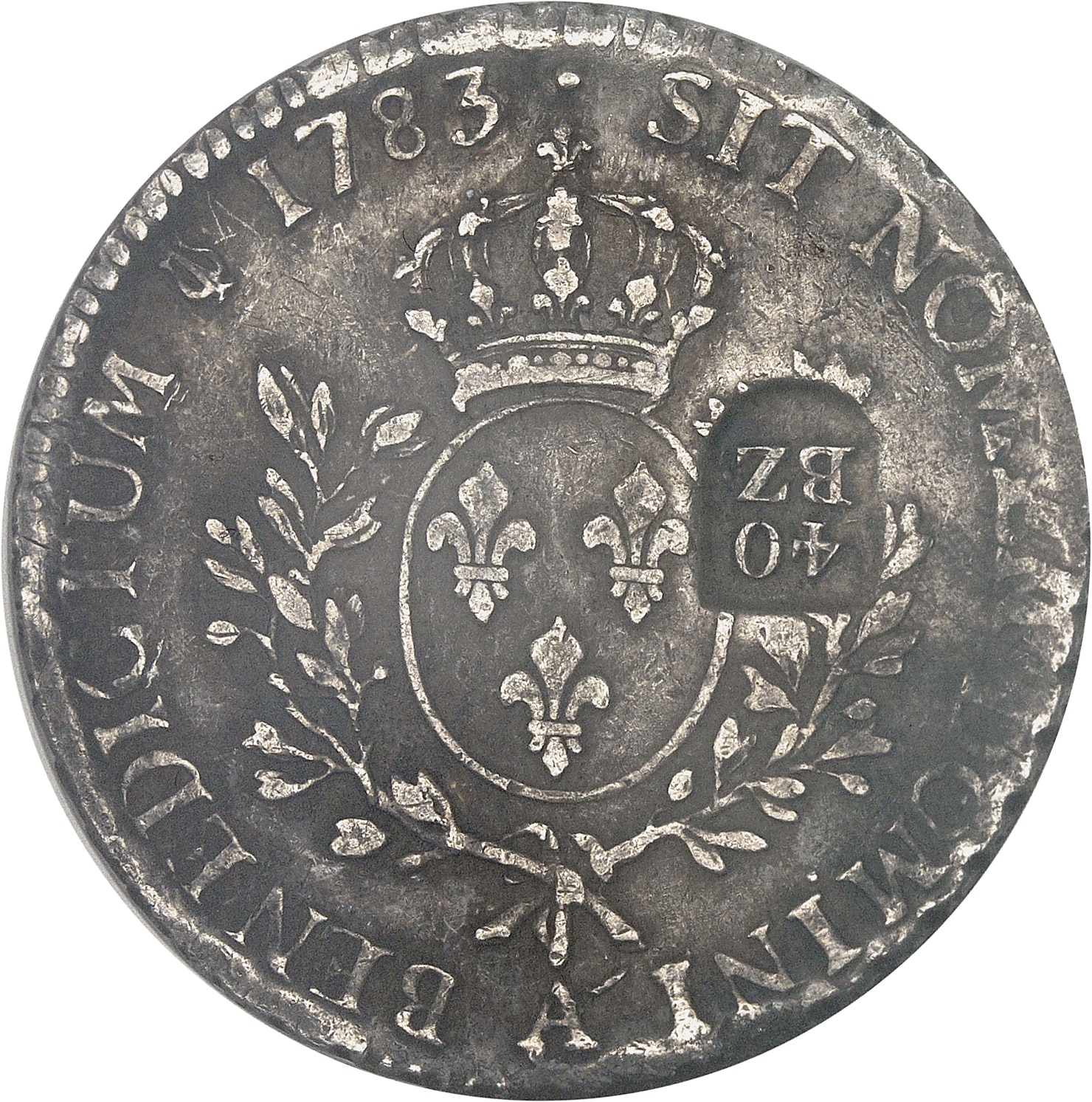 Rv. SIT. NOMEN. DOMINI - BENEDICTUM (différent) (date). Écu de France ovale, couronné, entre deux rameaux d’olivier, (atelier) au-dessous ; contremarque 40 BZ.
