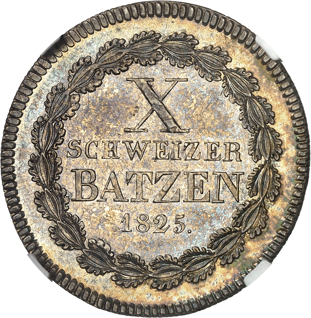 - SWITZERLAND Grisons (canton des). 10 batzen 1825 N, Berne.
