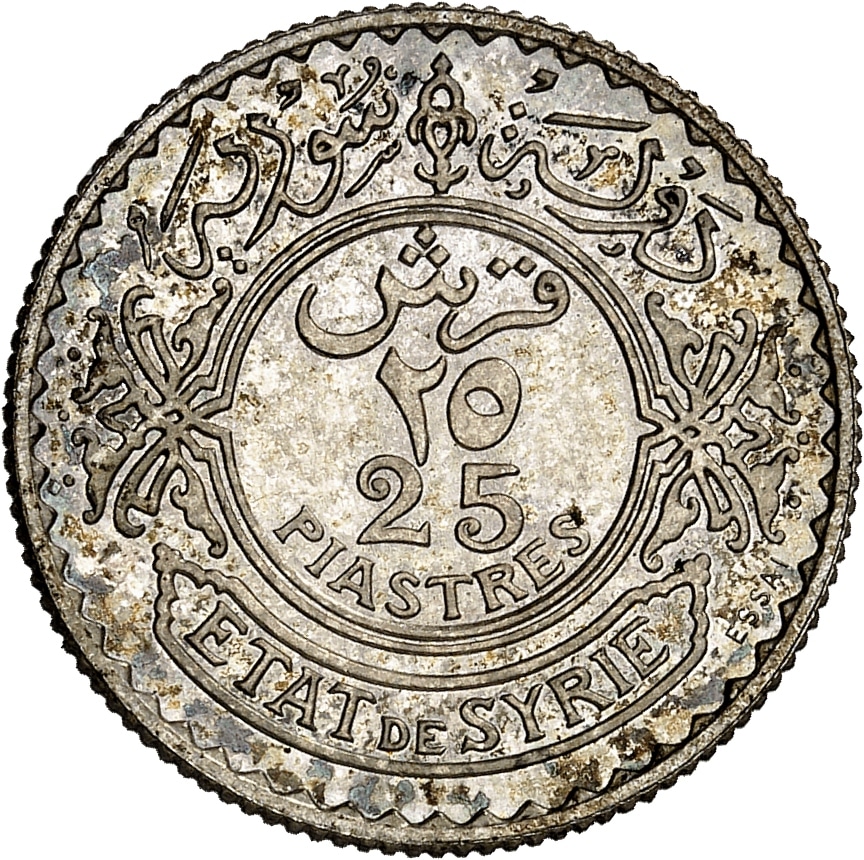 - SYRIA Mandat français (1920-1946). Essai de 25 piastres, Frappe spéciale (SP) 1929, Paris.
