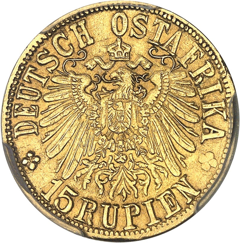 Rv. * DEUTSCH OSTAFRIKA / 15 RUPIEN. Aigle impériale éployée et couronnée.