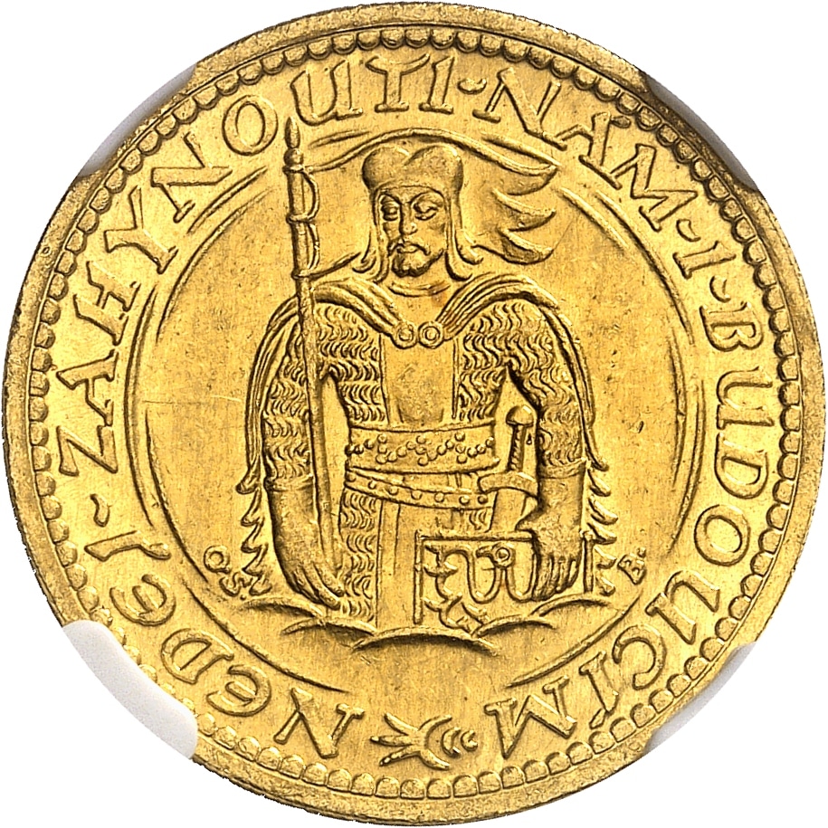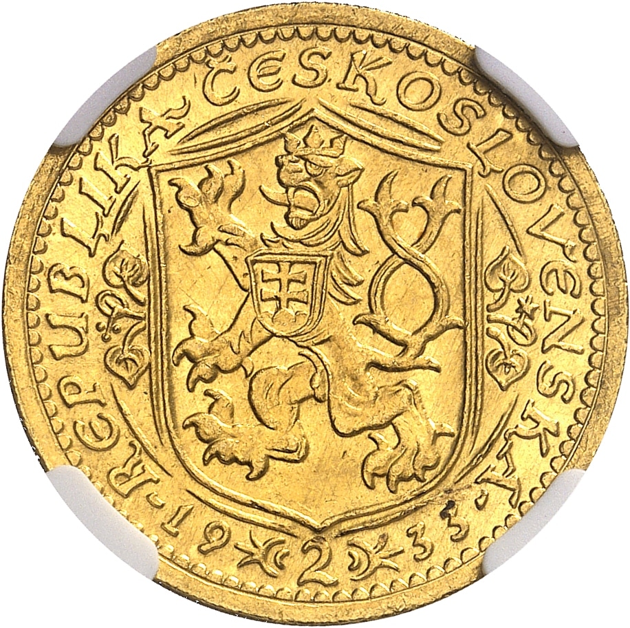 NGC MS 62 (5788890-045). Par J. Benda et O. Španiel (signature B-O.Š au revers). Seuls 4671 exemplaires frappés. De minimes marques de manipulation. Superbe à Fleur de coin.