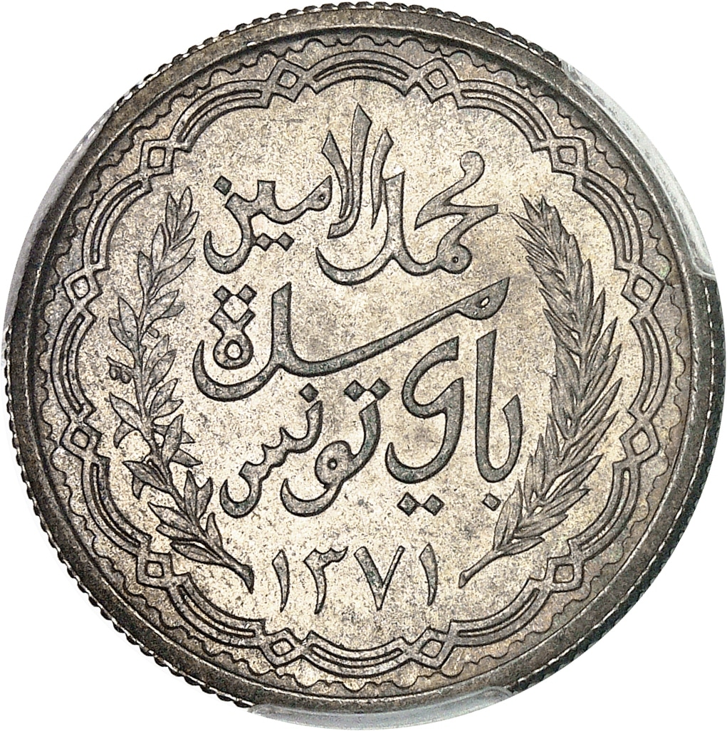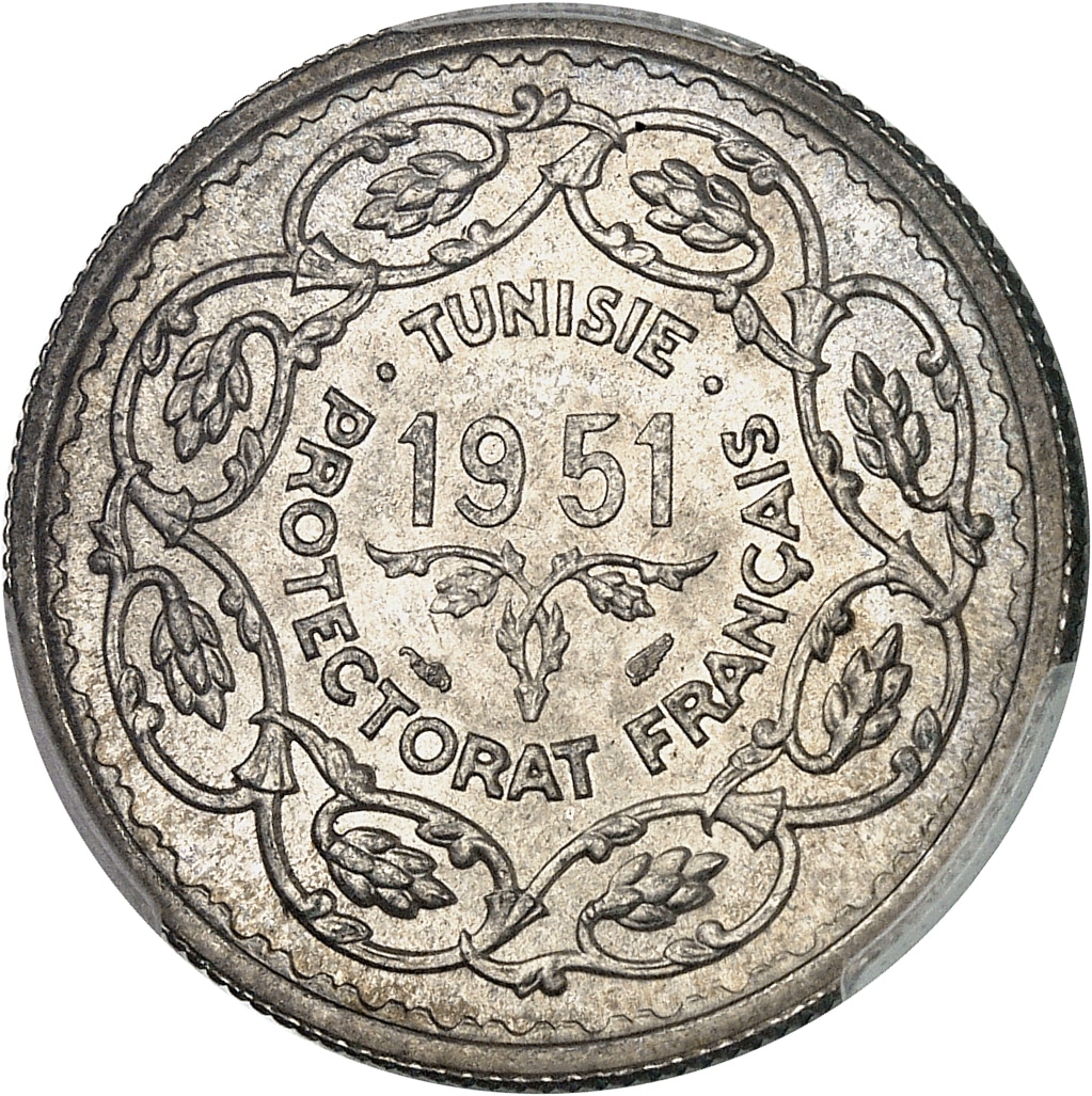 - TUNISIA Mohamed Lamine, Bey (1943-1957). Module de 10 francs 1951 - AH 1371, Paris.