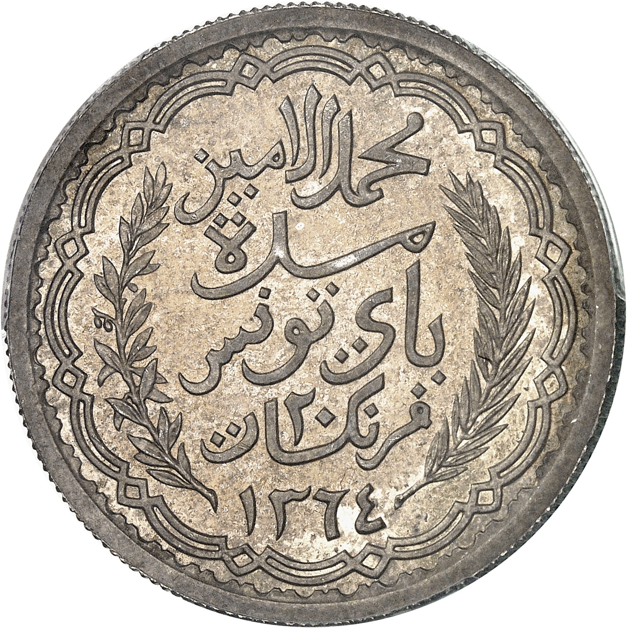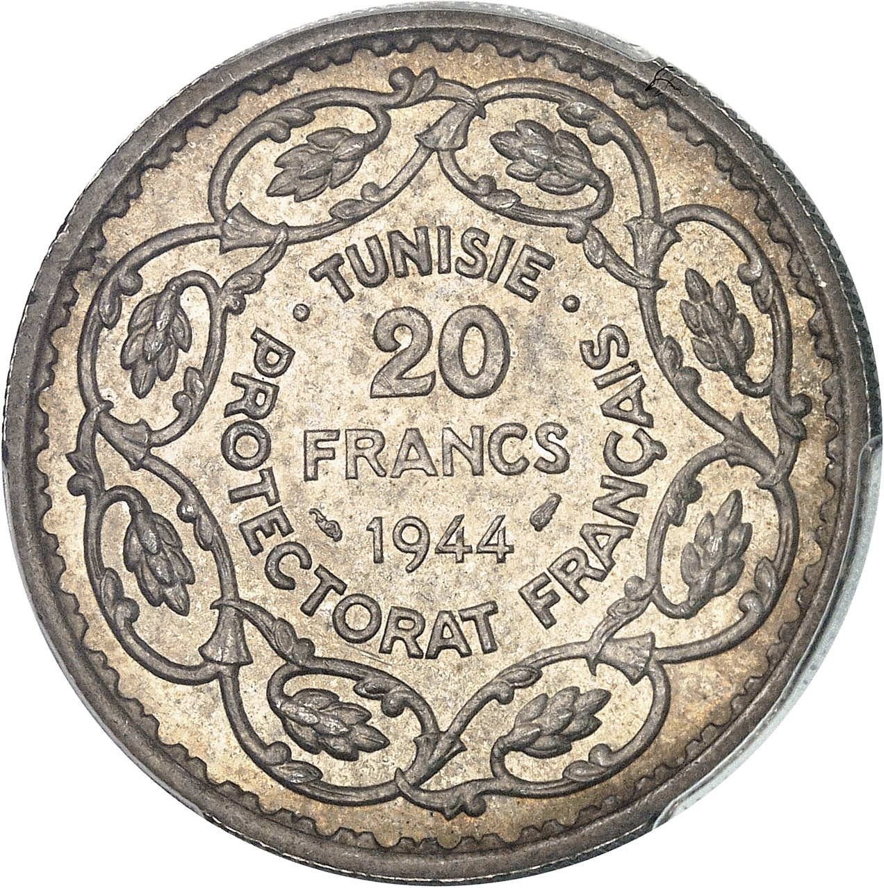 - TUNISIA Mohamed Lamine, Bey (1943-1957). 20 francs 1944 - AH 1364, Paris.