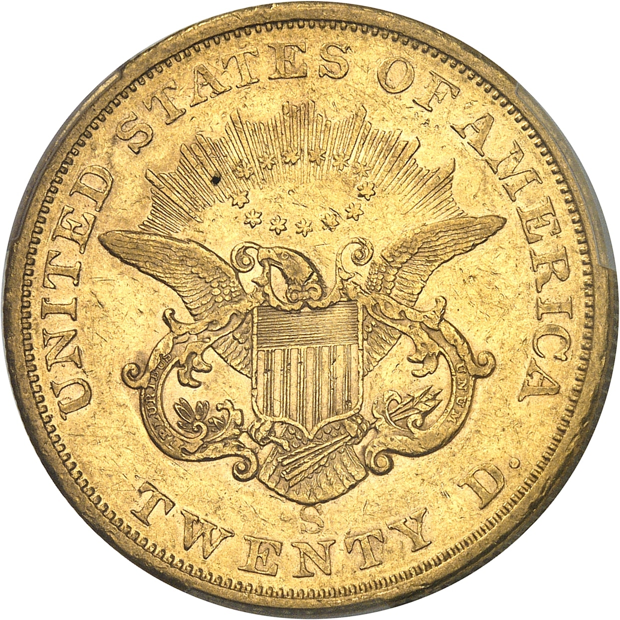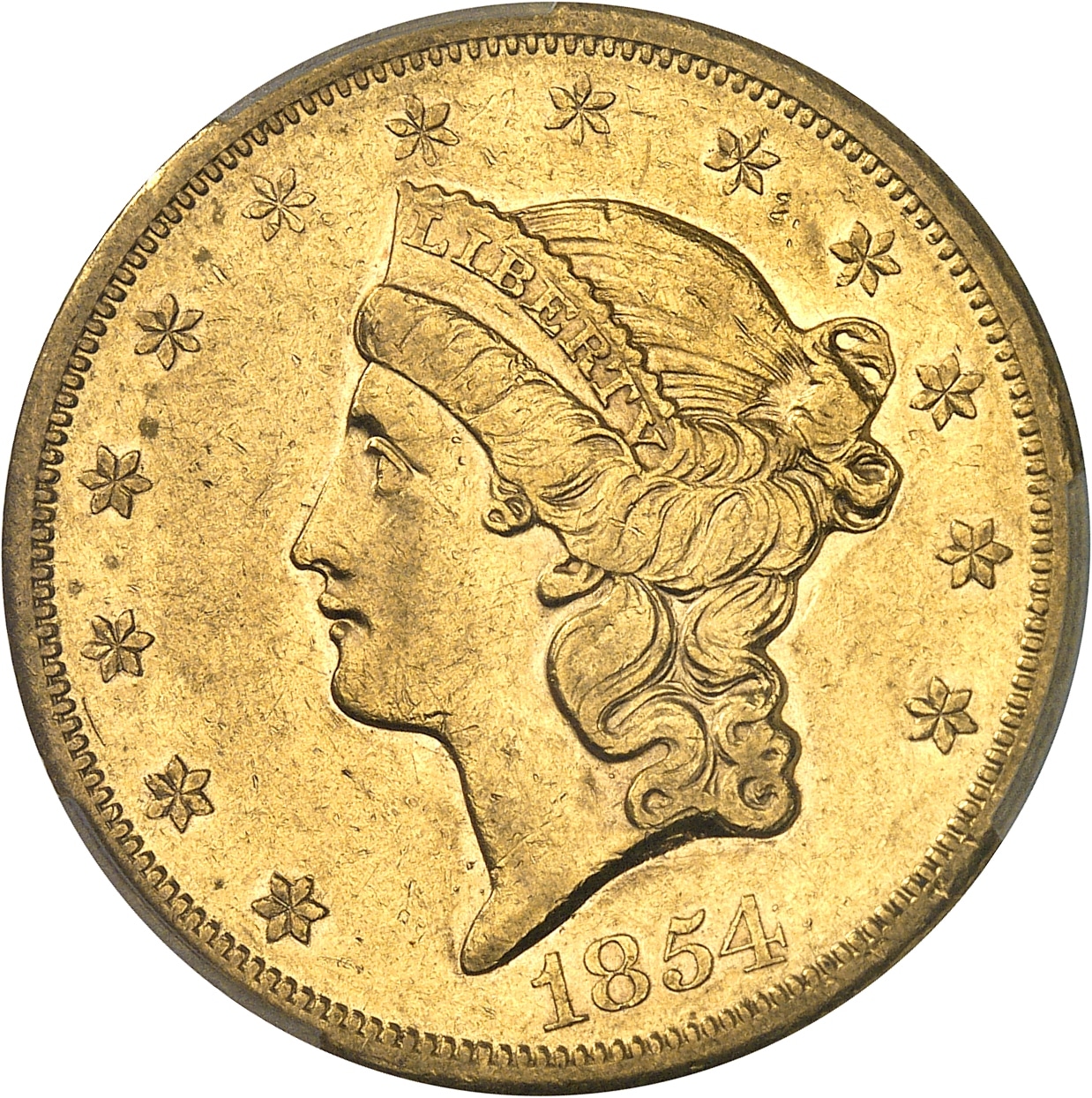 - UNITED STATES OF AMERICA République fédérale des États-Unis d’Amérique (1776-à nos jours). 20 dollars Liberty, sans devise 1854, S, San Francisco.