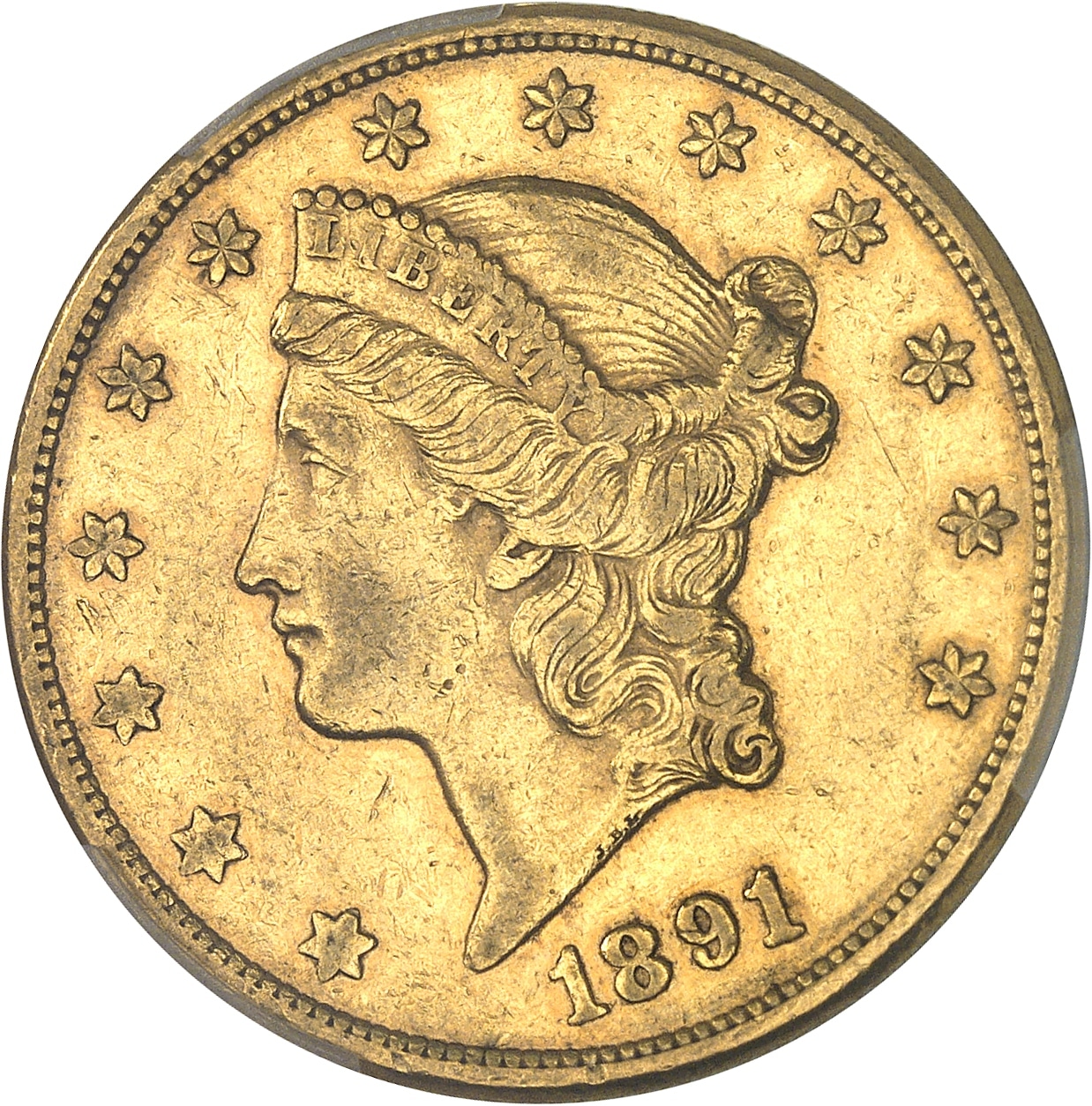 - UNITED STATES OF AMERICA République fédérale des États-Unis d’Amérique (1776-à nos jours). 20 dollars Liberty, avec devise 1891, CC, Carson City.