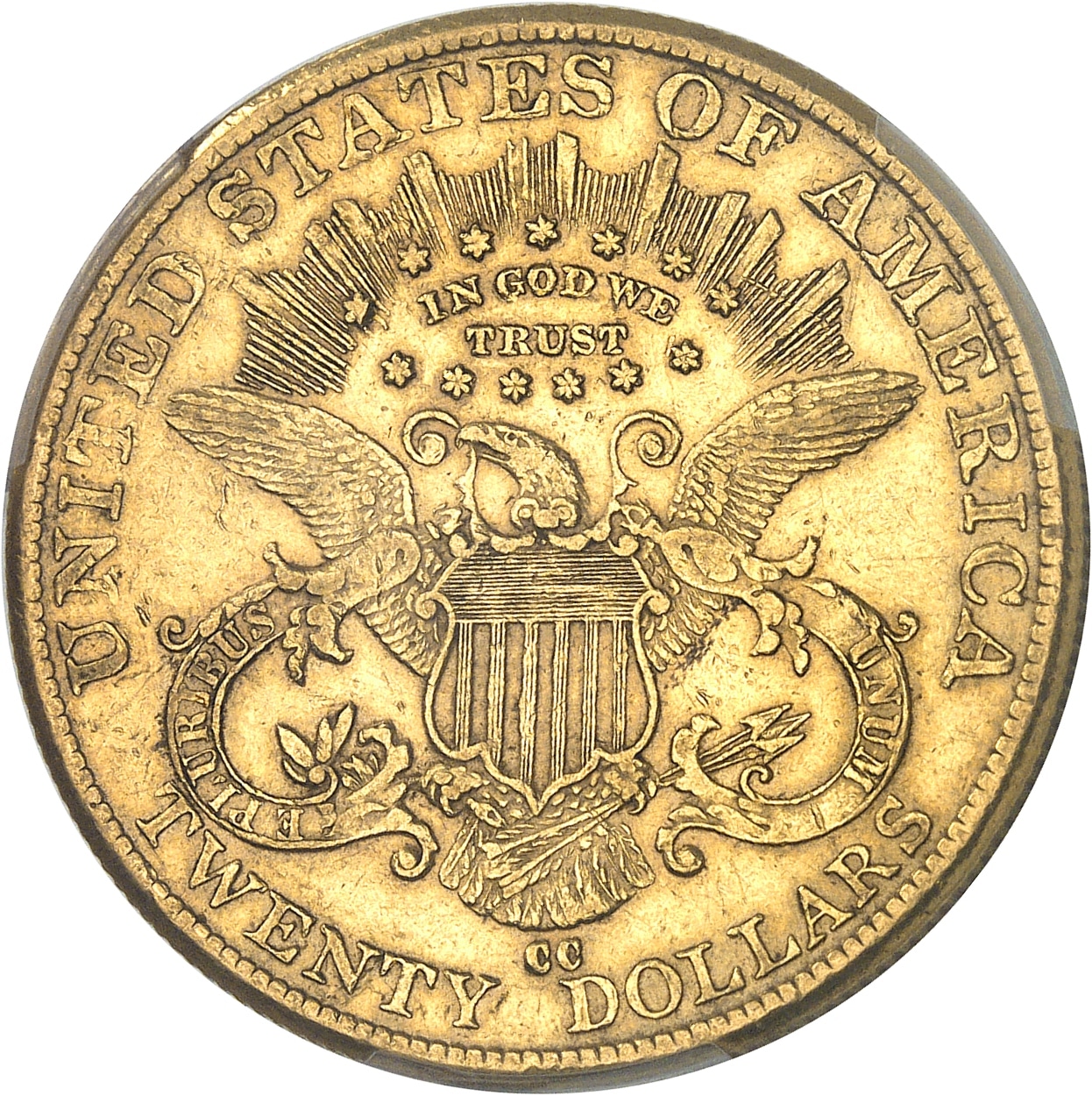 Rv. UNITED STATES OF AMERICA/ TWENTY DOLLARS. Aigle éployée, au-dessus IN GOD WE TRUST ; au-dessous (atelier).