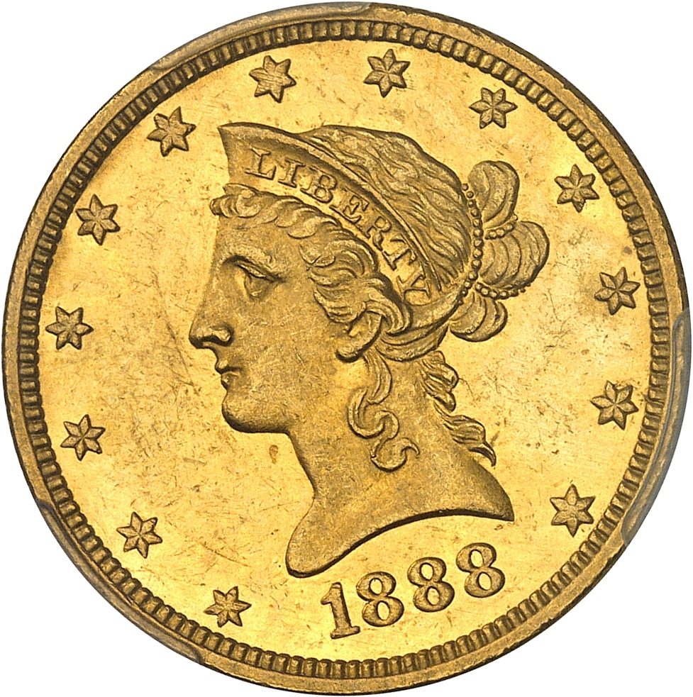 - UNITED STATES OF AMERICA République fédérale des États-Unis d’Amérique (1776-à nos jours). 10 dollars Liberty, avec devise 1888, O, La Nouvelle-Orléans.