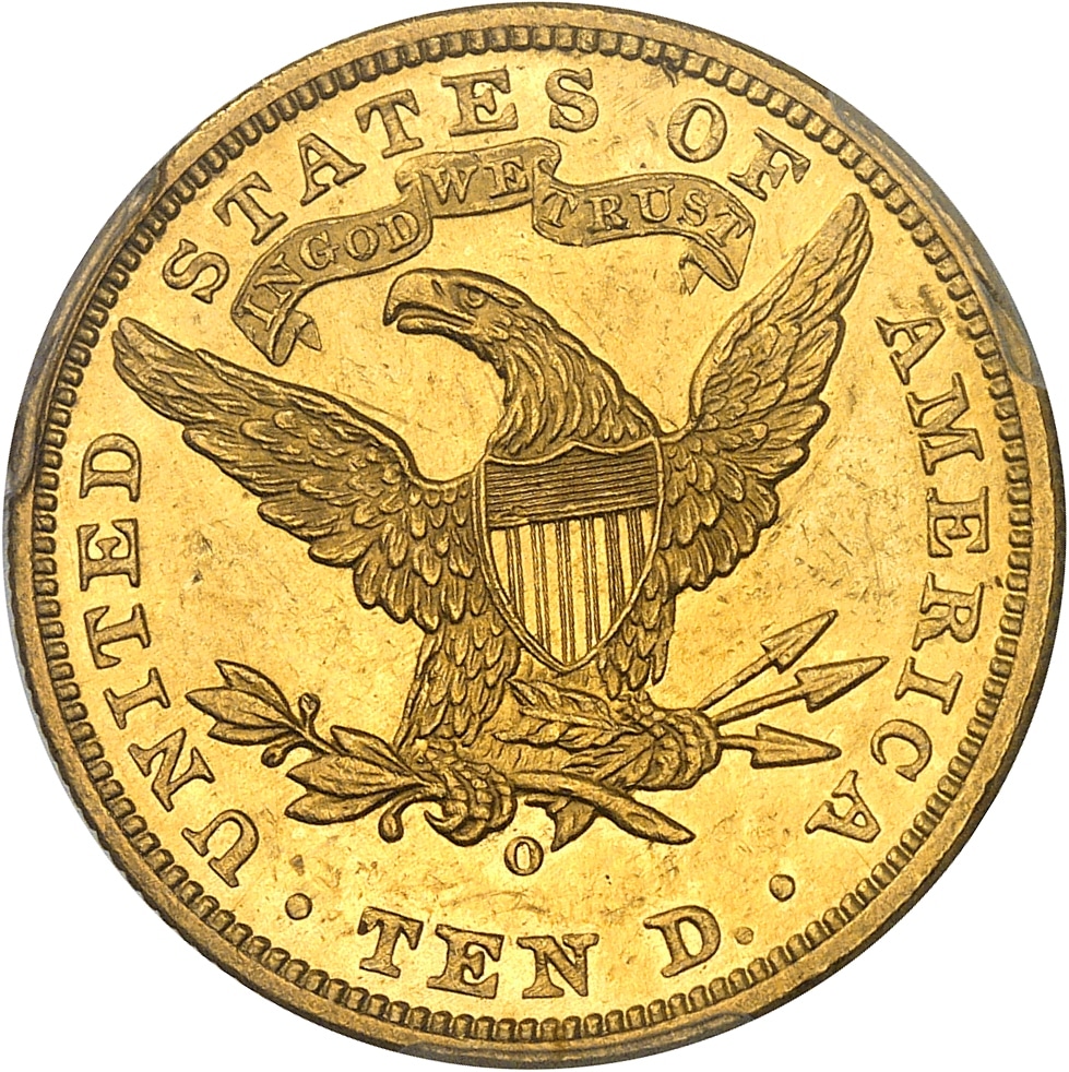 Rv. UNITED STATES OF AMERICA/ TEN D. Aigle éployée, au-dessus IN GOD WE TRUST et au-dessous (atelier).