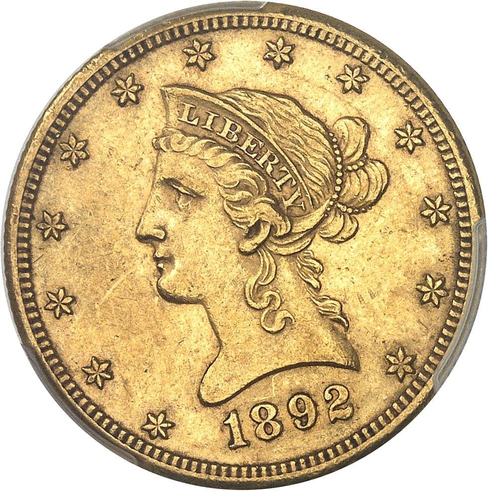 - UNITED STATES OF AMERICA République fédérale des États-Unis d’Amérique (1776-à nos jours). 10 dollars Liberty, avec devise 1892, CC, Carson City.
