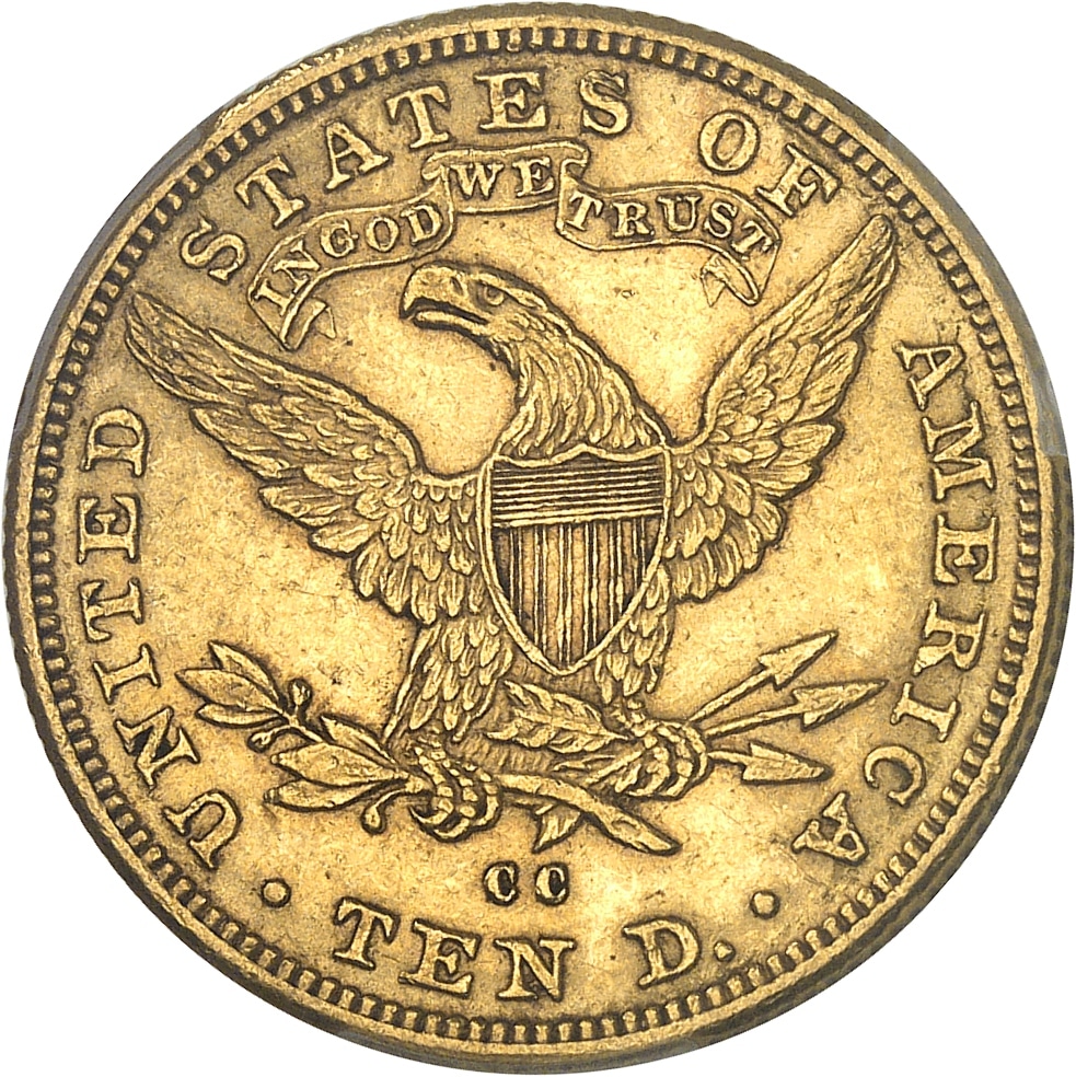 Rv. UNITED STATES OF AMERICA/ TEN D. Aigle éployée, au-dessus IN GOD WE TRUST ; au-dessous (atelier).