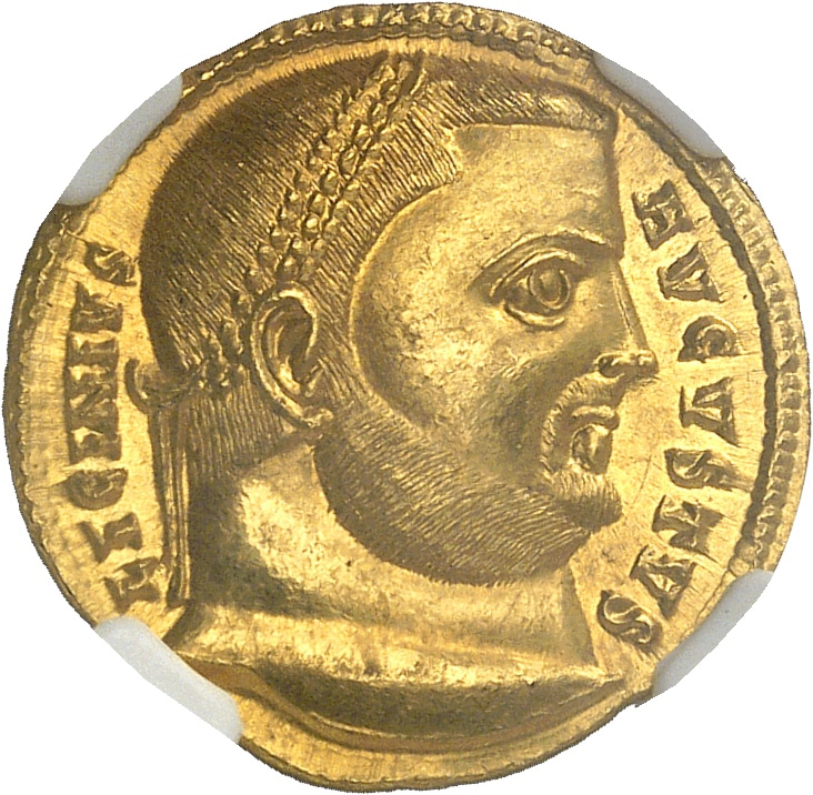 L’année 317 voir Licinius fêter les 10 ans de son règne, dans une période de calme et de stabilité, ce qui lui permet d’élever son jeune fils de 2 ans au rang de César. Cet aureus Semble rendre grâce de ces dix ans de règne et demande la faveur des dieux pour dix années supplémentaires. Licinius utilise Jupiter pour sa propagande et montre son opposition à son co-empereur Constantin qui s’était converti au christianisme. En 320, Licinius déclenche une persécution des chrétiens dans l’Empire d’Orient ce qui l’éloigne un peu plus de Constantin. Ce dernier envahit les terres de Licinius en 323, met en déroute la flotte de Licinius et l’emporte définitivement en 325 lors de la bataille de Chrysopolis à la suite de laquelle Licinius Ier et son fils sont exécutés Découvrir cette pièce en vidéo * Following Council Directive (EU) 2022/542 of April 5, 2022, implemented in national law from 01/01/2025, buyers from within the EU have to pay 5.5% VAT on the hammer price of this lot. * Suite à la Directive (UE) 2022/542 du Conseil du 5 avril 2022, mise en application dans le droit national à compter du 01/01/2025, l’adjudicataire européen devra également payer une TVA de 5,5% sur ce lot