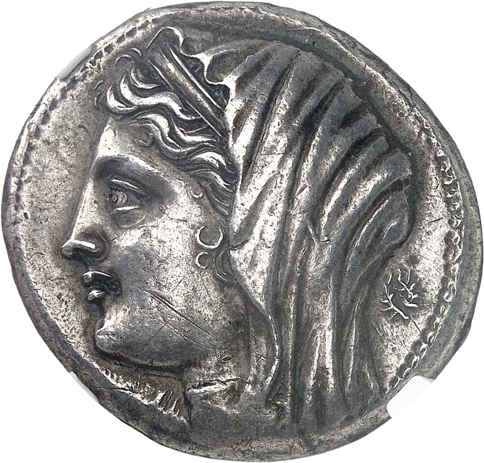 Av. Tête diadémée et voilée de Philistis à gauche ; derrière, une petite couronne.