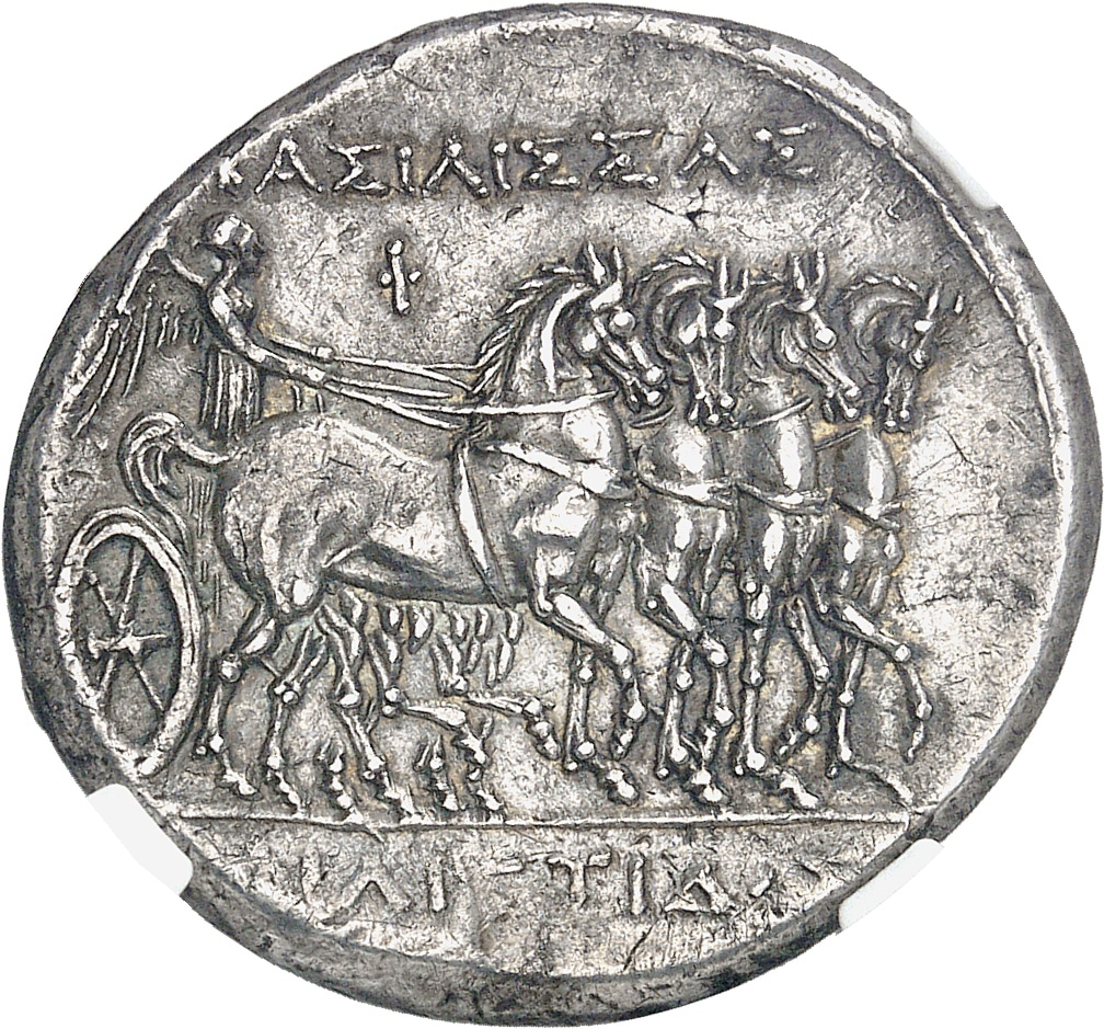 Rv. ΒΑΣΙΛΙΣΣΑΣ / ΦΙΛΙΣΤΙΔΟΣ. Quadrige au pas à droite, conduit par la Victoire debout à droite ; lettre Φ au-dessus.