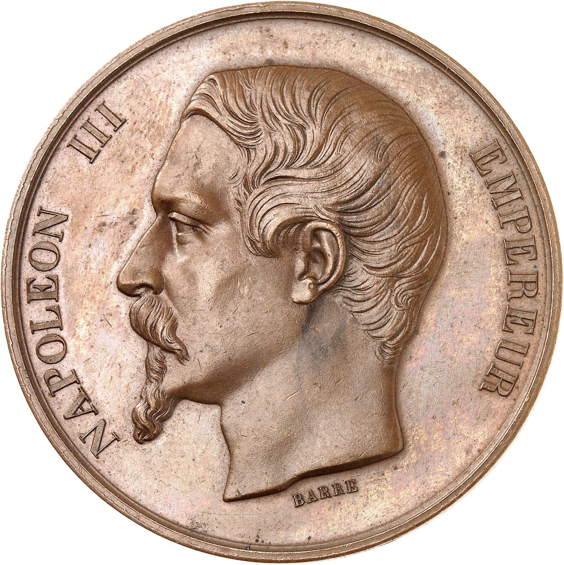 Av. NAPOLEON III - EMPEREUR. Tête nue à gauche de Napoléon III ; au-dessous, signature BARRE.