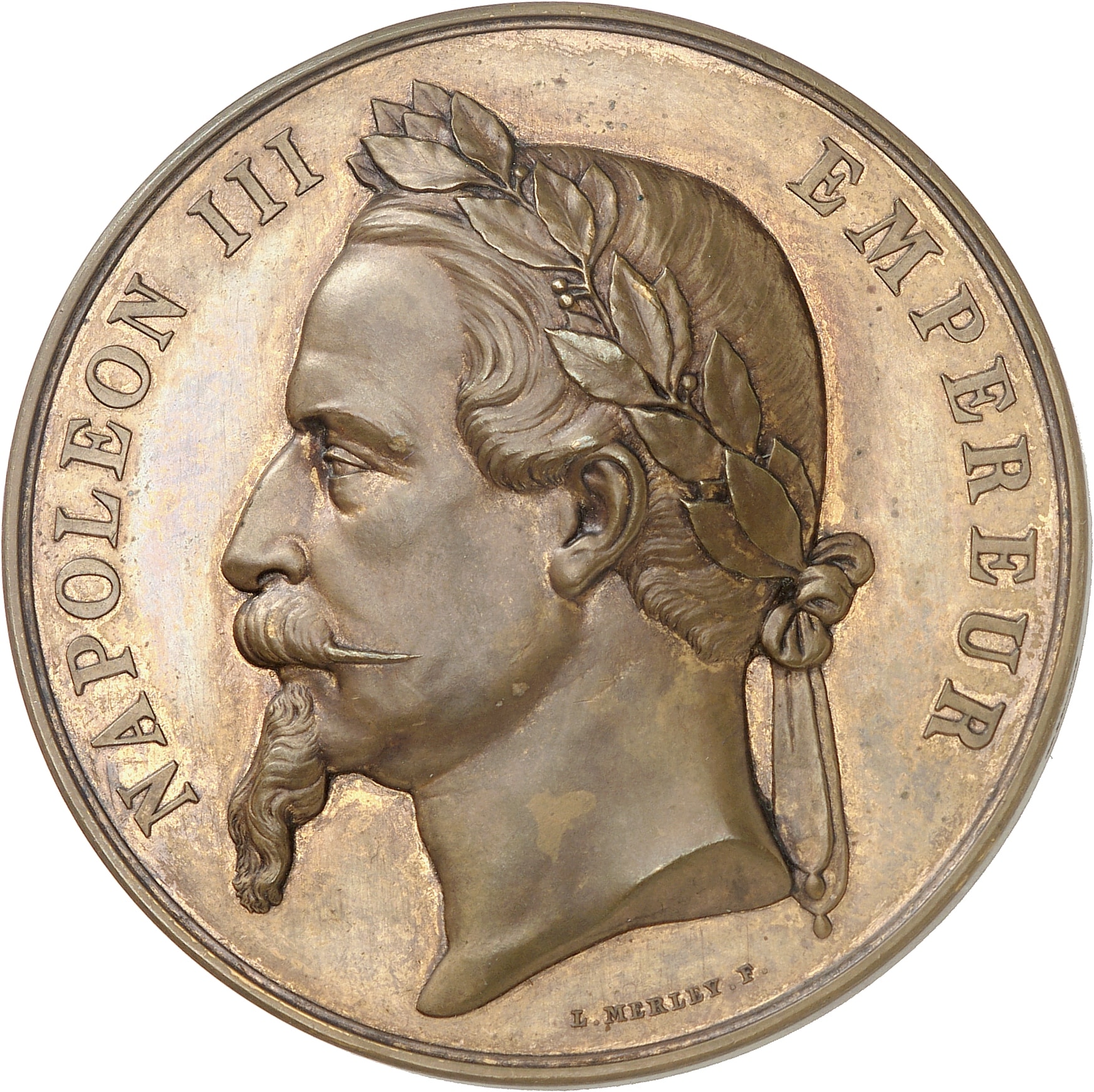 Av. NAPOLEON III - EMPEREUR. Tête laurée de Napoléon III à gauche ; au-dessous, signature L. MERLEY F.
