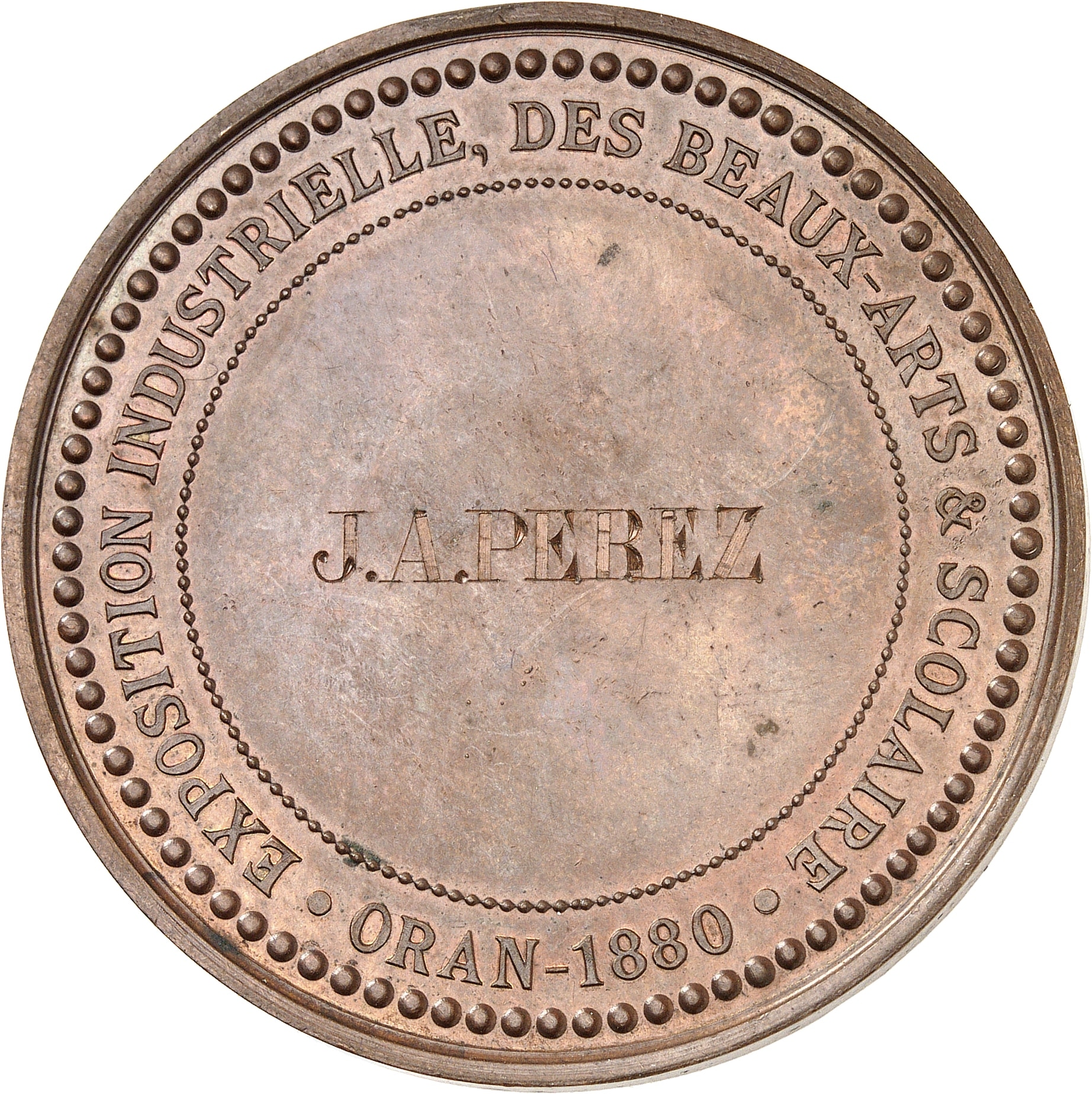 - ALGERIA IIIe République (1870-1940). Médaille, Exposition industrielle, des Beaux-Arts et Scolaire d’Oran 1880, Paris (A. Desaide).