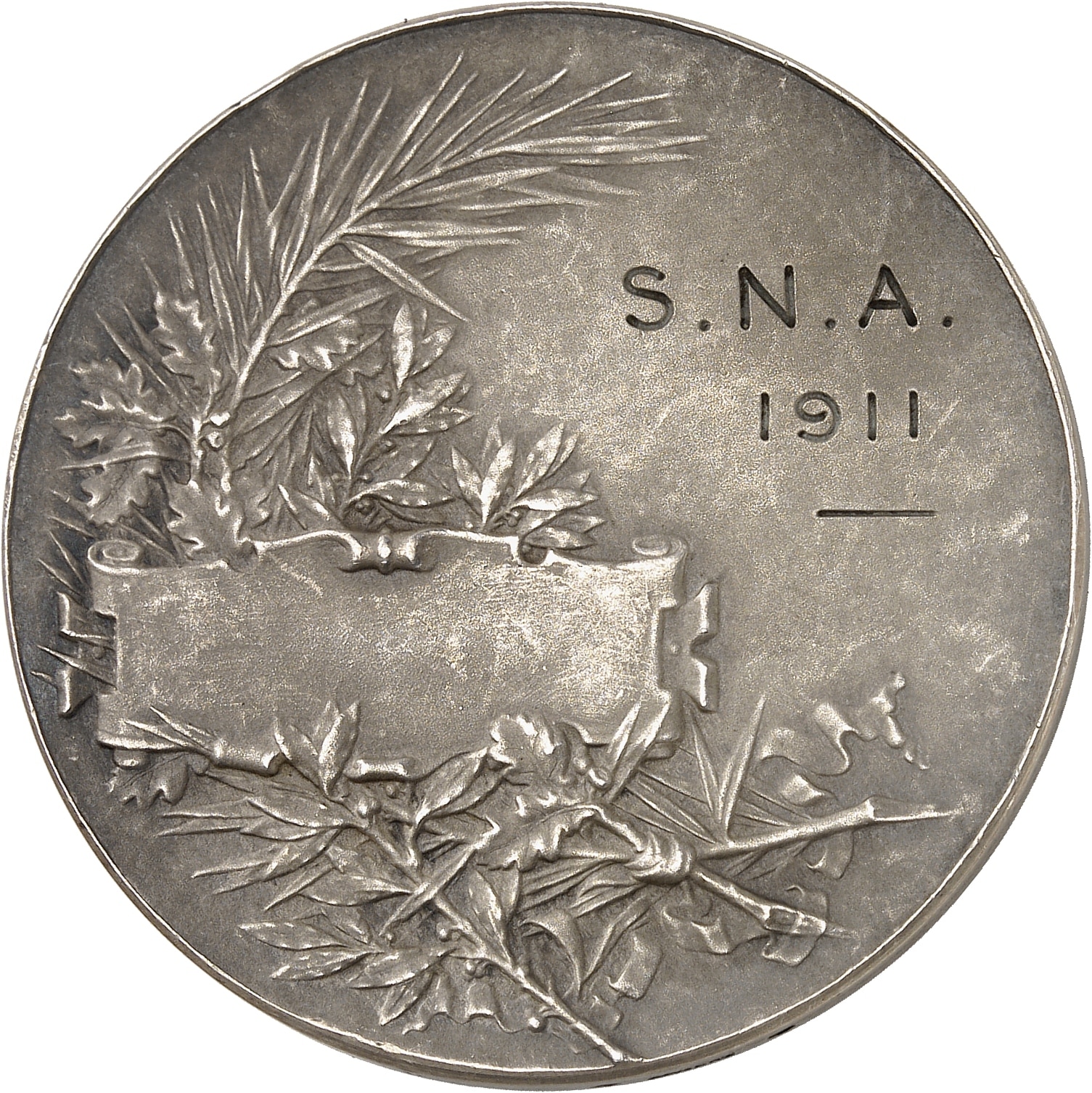Rv. Cartouche sur une palme ; attribution S. N. A. 1911.