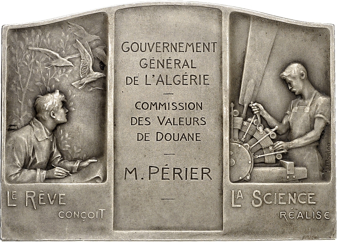 - ALGERIA IIIe République (1870-1940). Plaque, Commission des valeurs de douane, “la navigation aérienne” par A. Morlon, ND (c.1925), Paris.