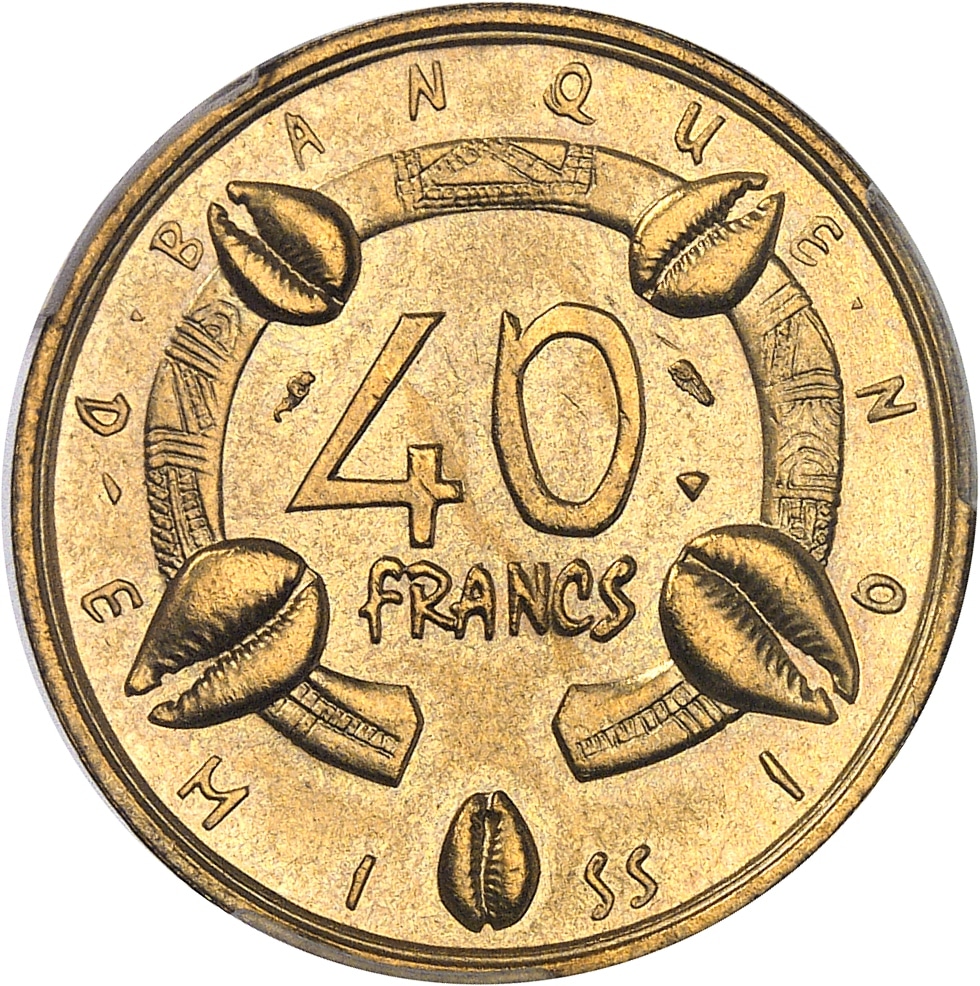 - FRENCH EQUATORIAL AFRICA Communauté française (1958-1959). Épreuve de 40 francs, concours de 1958, par A. Galtié, Frappe spéciale (SP) ND (1958), Paris.