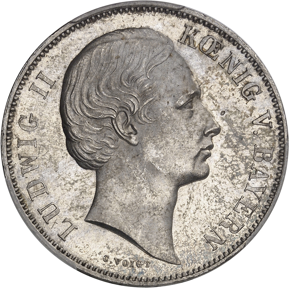 Av. LUDWIG II - KŒNIG V. BAYERN. Tête nue à droite ; au-dessous, signature C. VOIGT.