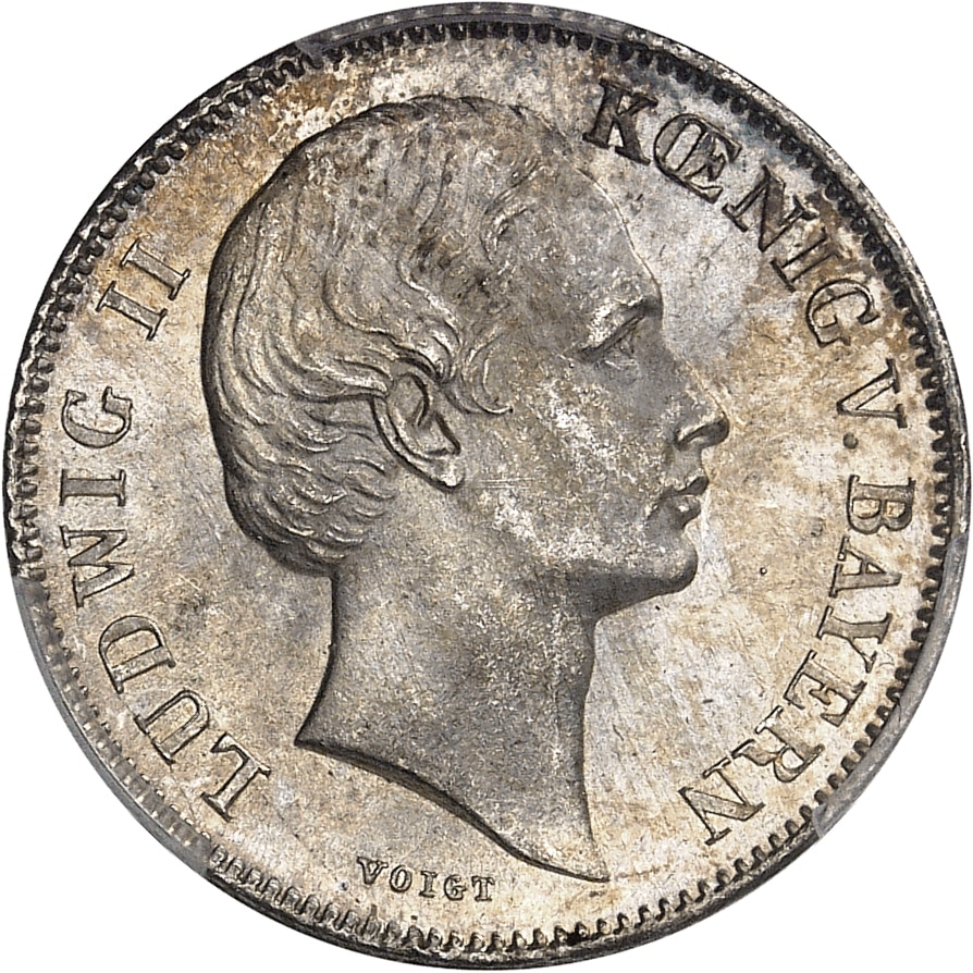 - GERMANY Bavière, Louis II (1864-1886). 1/2 florin 1865, Munich.