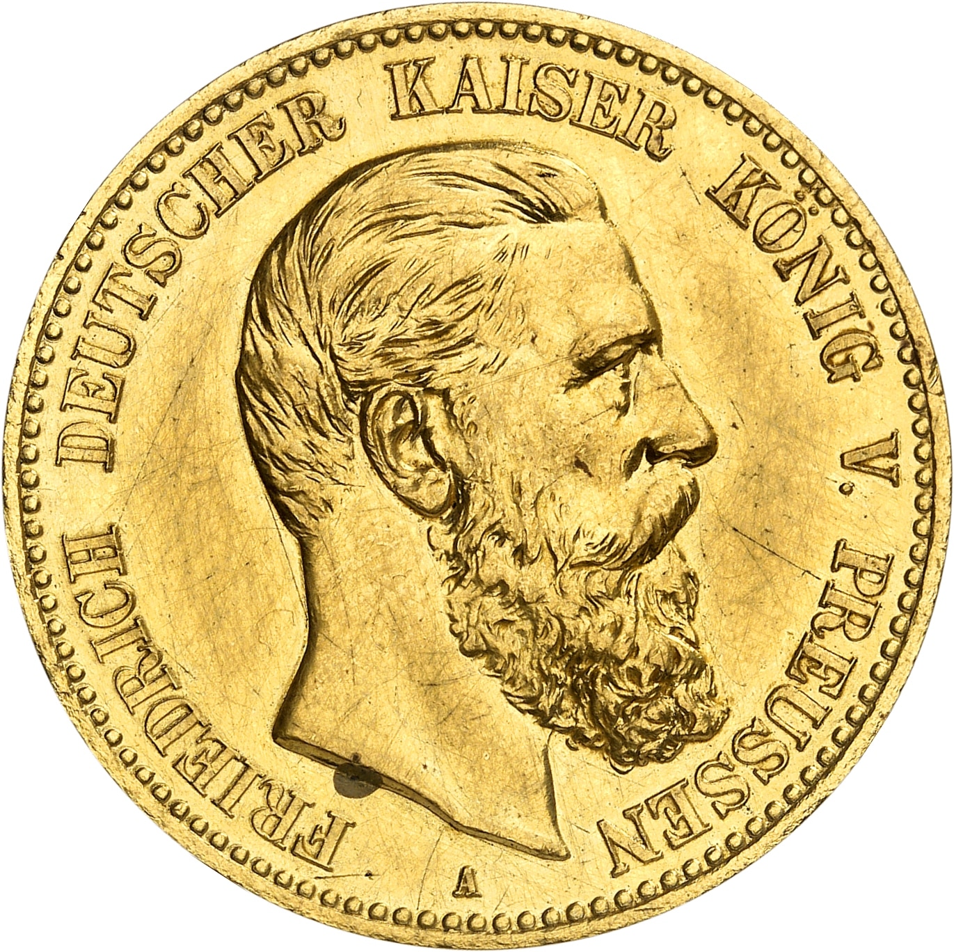 Av. FRIEDRICH DEUTSCHER KAISER KÖNIG V. PREUSSEN. Tête nue à droite ; au-dessous (atelier).