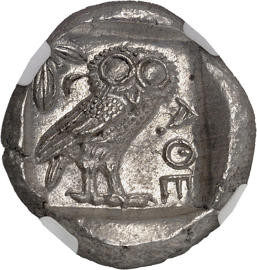 NGC MS 5/5 5/5 (8524373-002). Dans son état de frappe et d’une grande fraîcheur avec son brillant d’origine. La frappe est vigoureuse avec la chouette parfaitement inscrite dans son carré et un buste en haut relief au droit. Fleur de coin.
