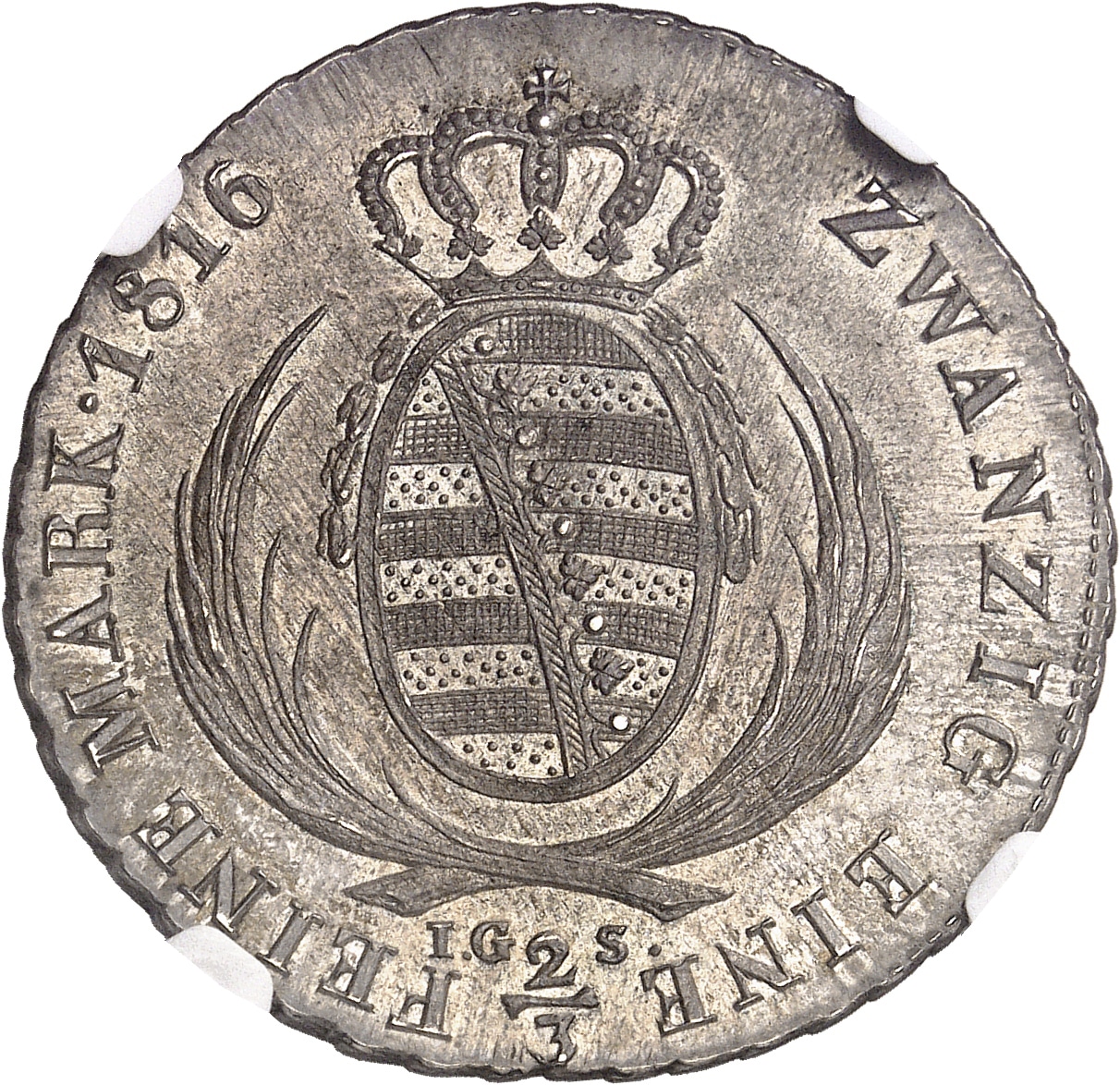 - GERMANY Saxe, Frédéric-Auguste Ier (1806-1827). 2/3 de thaler 1816 IGS, Dresde.