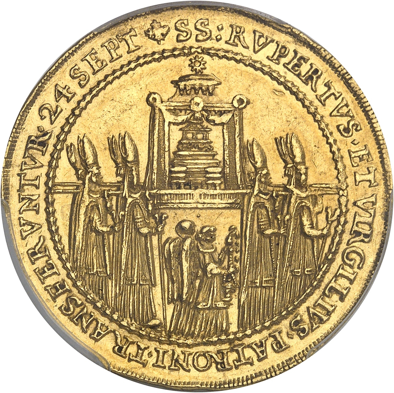 - AUSTRIA Salzbourg (évêché de), Paris von Lodron (1619-1653). 4 ducats, consécration de la cathédrale 1628, Salzbourg.