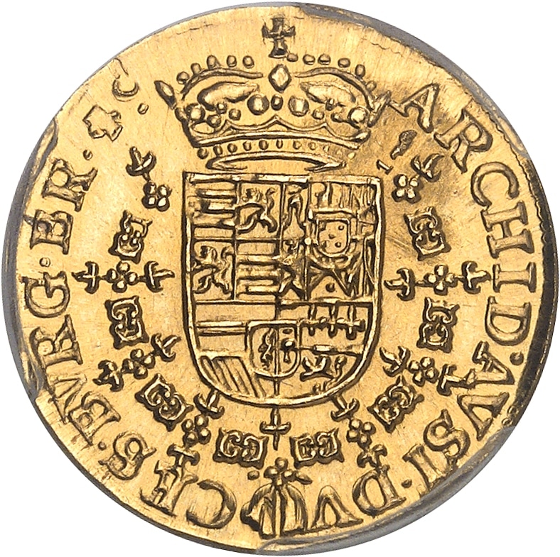 Rv. ARCHID. AVST. DV - CES BVRG. BR. Écu couronné en entouré du collier de la toison d’or ; poinçons 1 (corne).