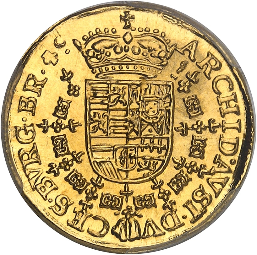 Rv. ARCHID. AVST. DV - CES BVRG. BR. Écu couronné en entouré du collier de la toison d’or ; poinçons 1 (corne).