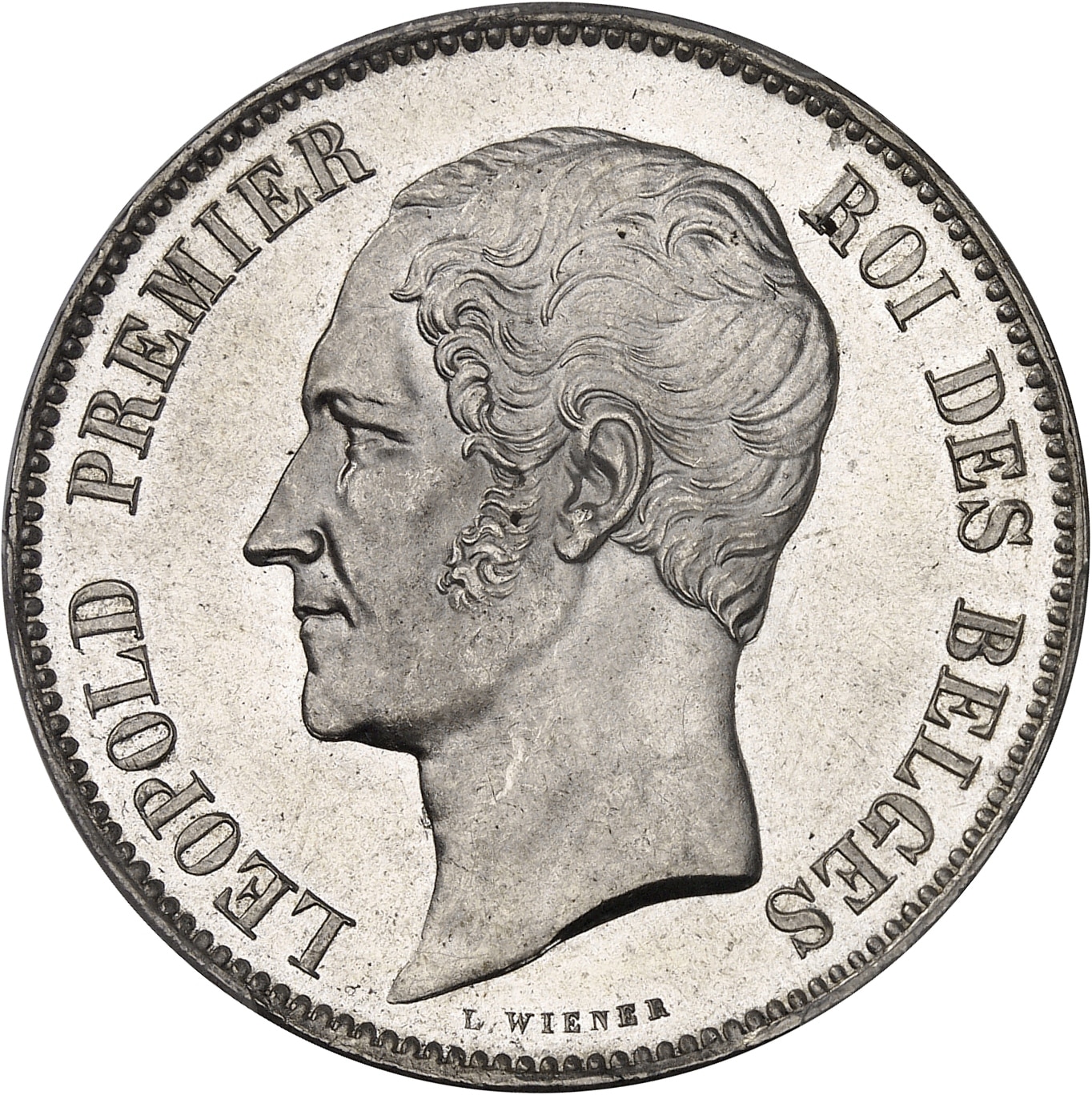 Av. LEOPOLD PREMIER - ROI DES BELGES. Tête nue à gauche, signature L. WIENER.