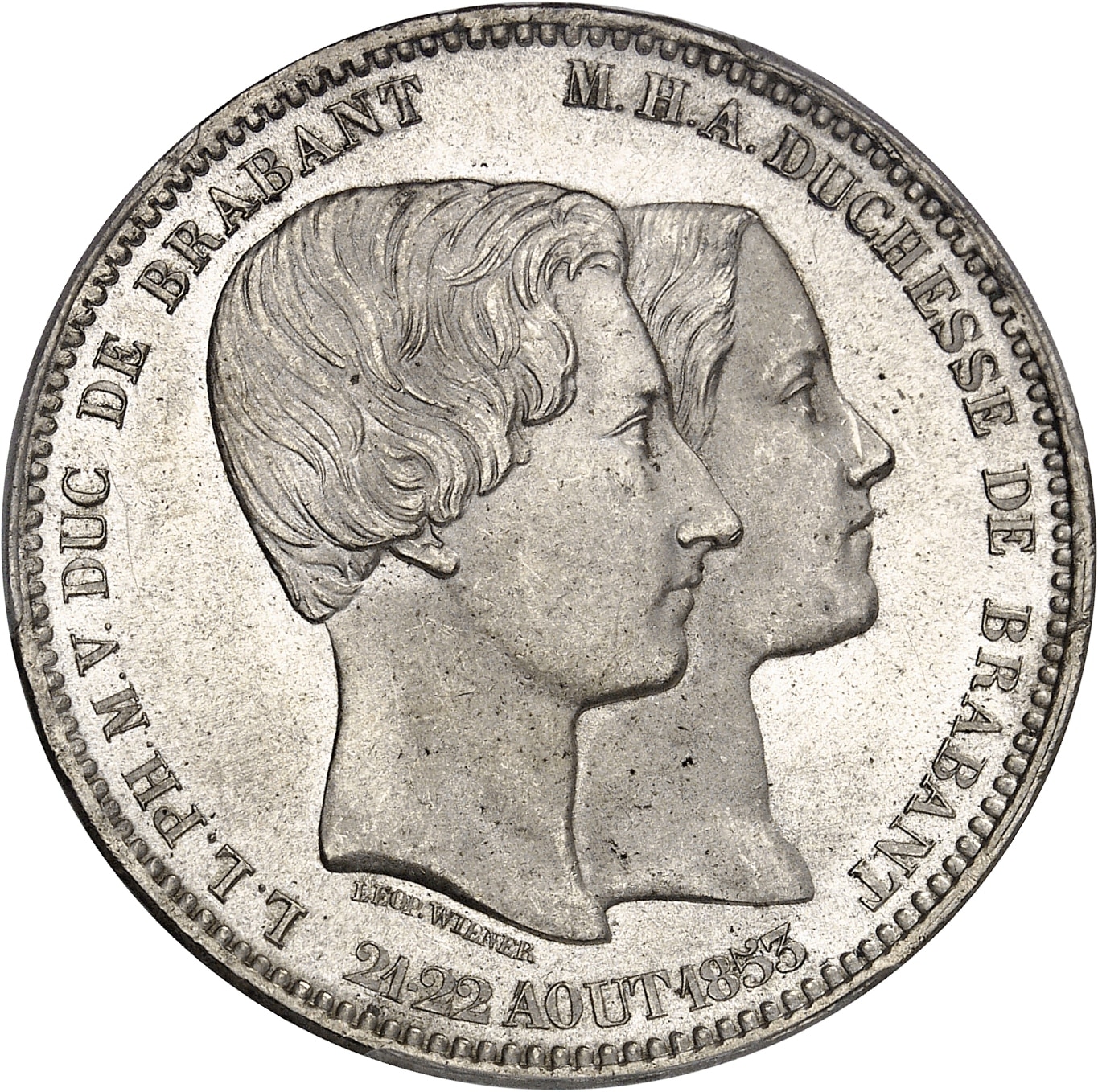 - BELGIUM Léopold Ier (1831-1865). Module de 5 francs, mariage du duc et de la duchesse de Brabant 1853, Bruxelles.