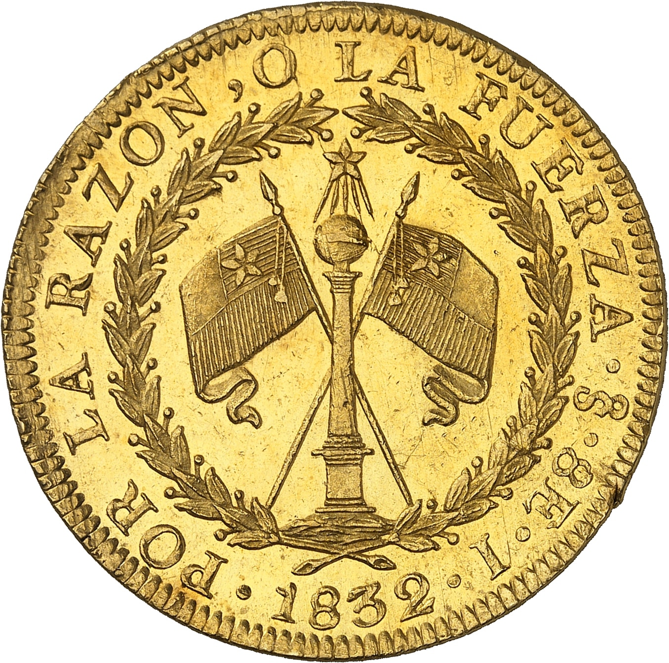 - CHILE République. 8 escudos 1832 I, S°, Santiago.