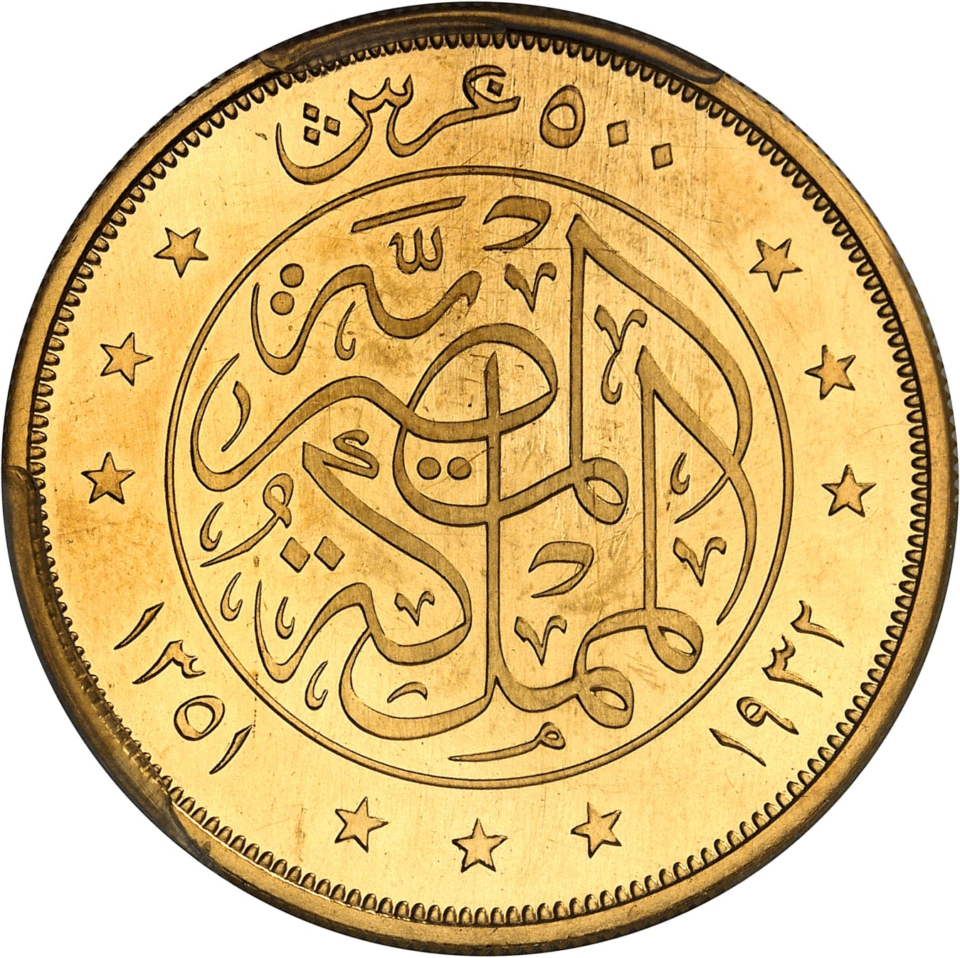 - EGYPT Fouad Ier (1917-1936). 500 piastres, Flan bruni (PROOF) AH 1351 - 1932, Londres.