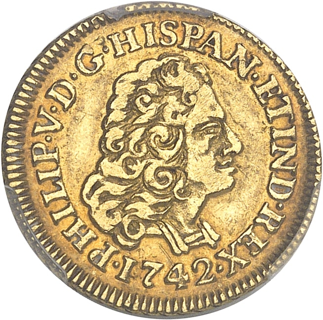- SPAIN Philippe V (1700-1746). 1 escudo 1742 JA, M couronnée, Madrid.
