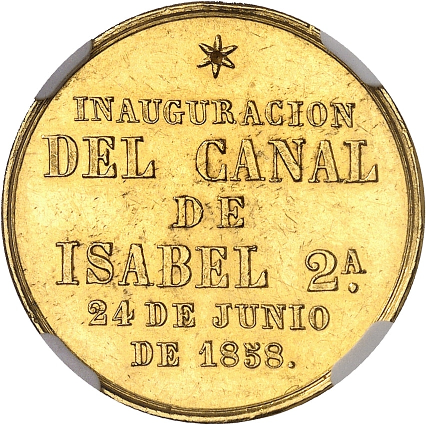 - SPAIN Isabelle II (1833-1868). Médaille d’Or, inauguration du Canal d’Isabelle II à Madrid 1858, Madrid.