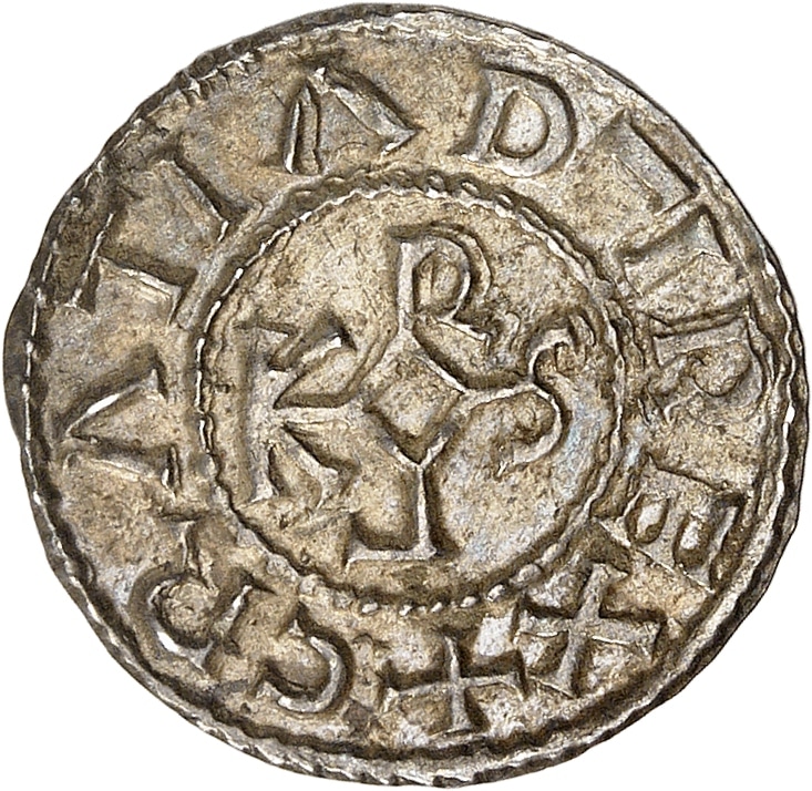 Av. (à 6 h) CRATIA D-I RE (rétrograde). Monogramme carolin.