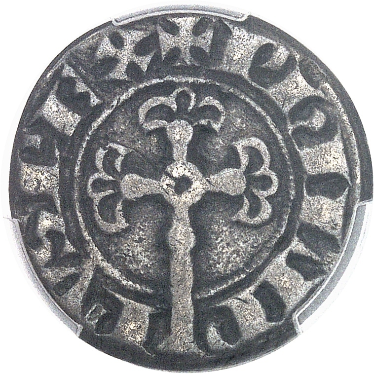 Ce type est à l’O rond, et de bon titre (479 ‰) comme indiqué par son nom de Burgensis fortis, repris au revers. La valeur en était de 2 deniers parisis soient 2,5 deniers tournois